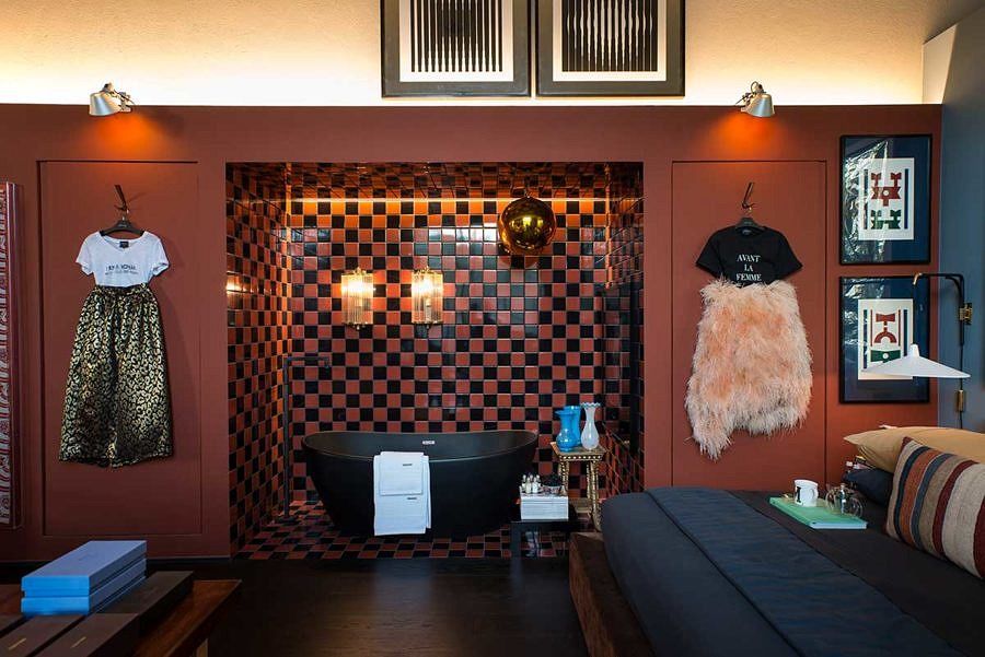 Um dos ambientes mais lindos e impactantes da CasaCor. Quando eu vi aquele revestimento 10×10 xadrez no recuado da banheira eu sabia que ali tinha muito embasamento e conceito. Ele fez a saia de plumas compor a decoração de forma magistral. São pequenos detalhes como esse que mostram como há pesquisa e referências nas entrelinhas, coisa que pra maioria das pessoas passa despercebido. Painelzinho ripado e bege todo mundo faz. Quero ver é profissional que sabe correr riscos!