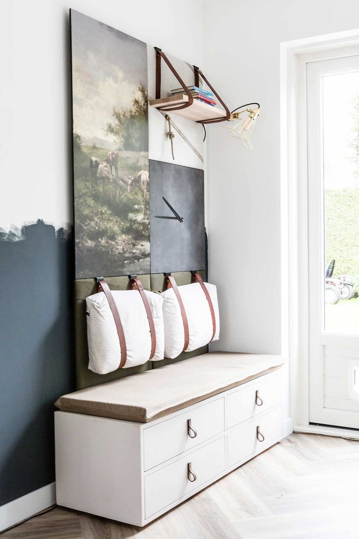 Antes mesmo de pegar prego e martelo para instalar os itens citados acima, analise se vai querer instalar um papel de parede ou fazer uma pintura diferente, como portas coloridas ou desenhos geométricos, é uma maneira rápida e criativa de mudar completamente o visual do hall. Feito isso, posicione os móveis e inicie o processo de decoração, ao redor ou sobre eles, agregando volume e personalidade ao seu cartão de visita, com objetos compactos e que explorem as áreas verticais: