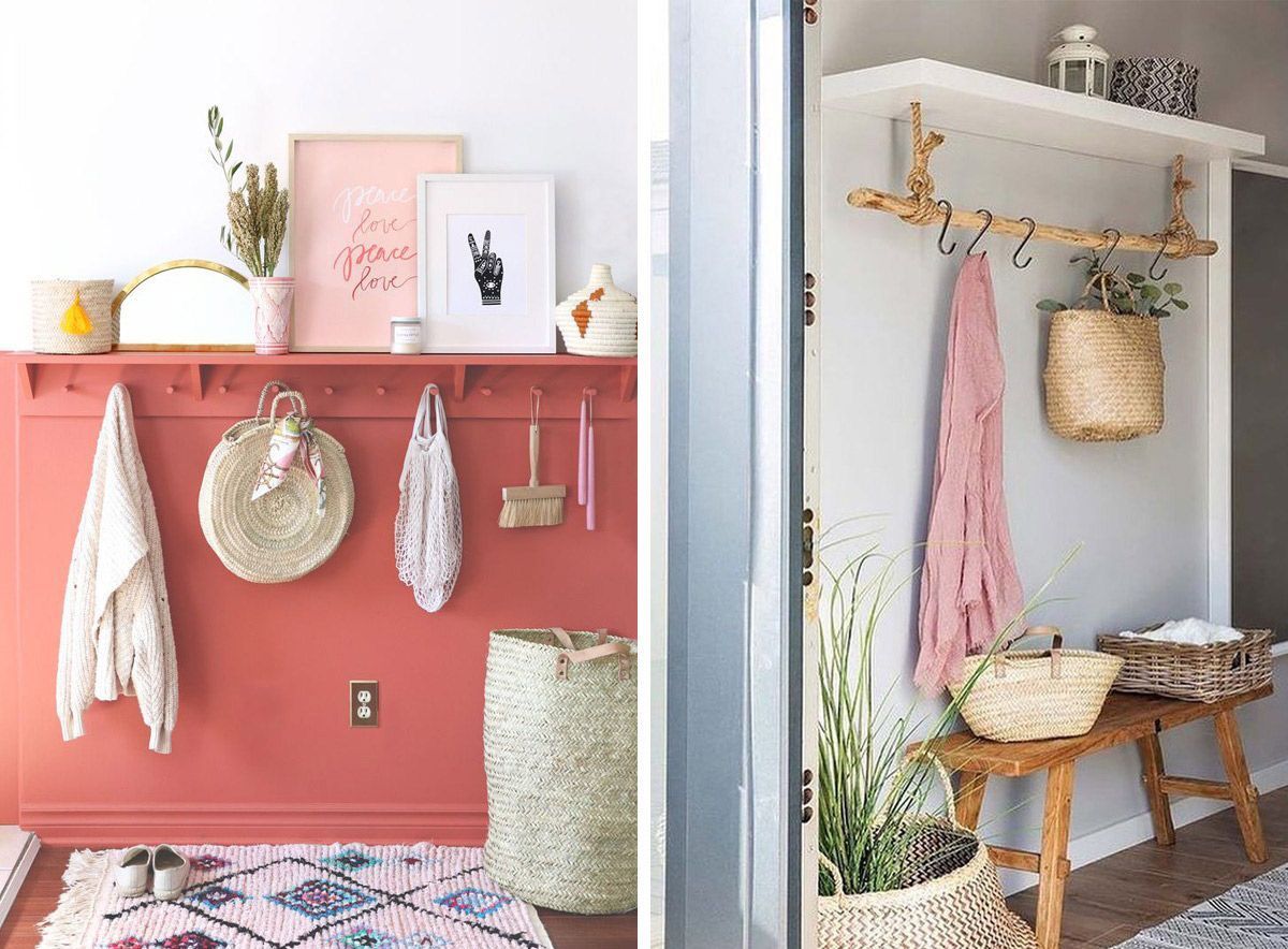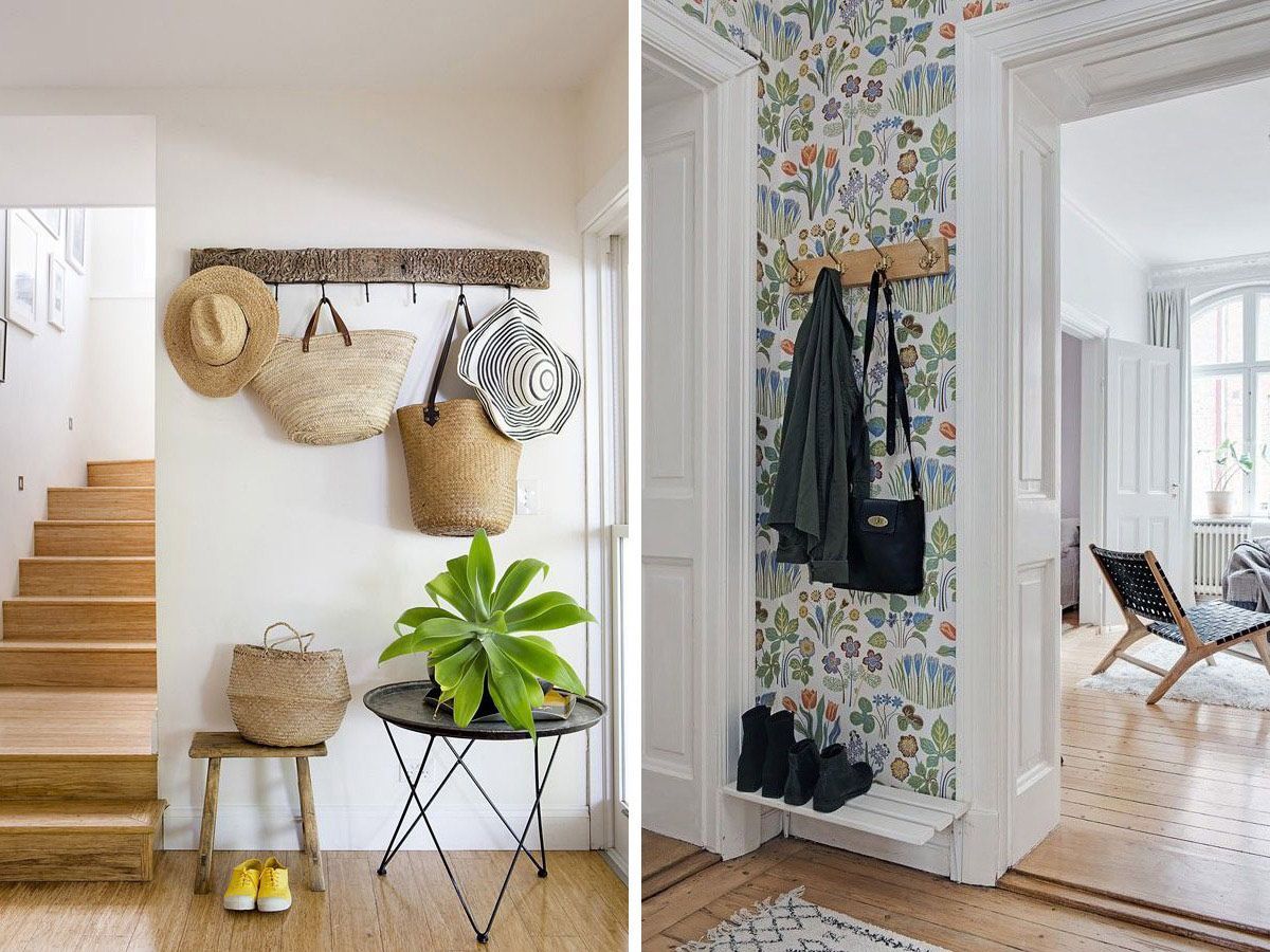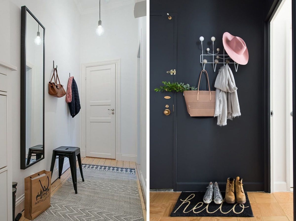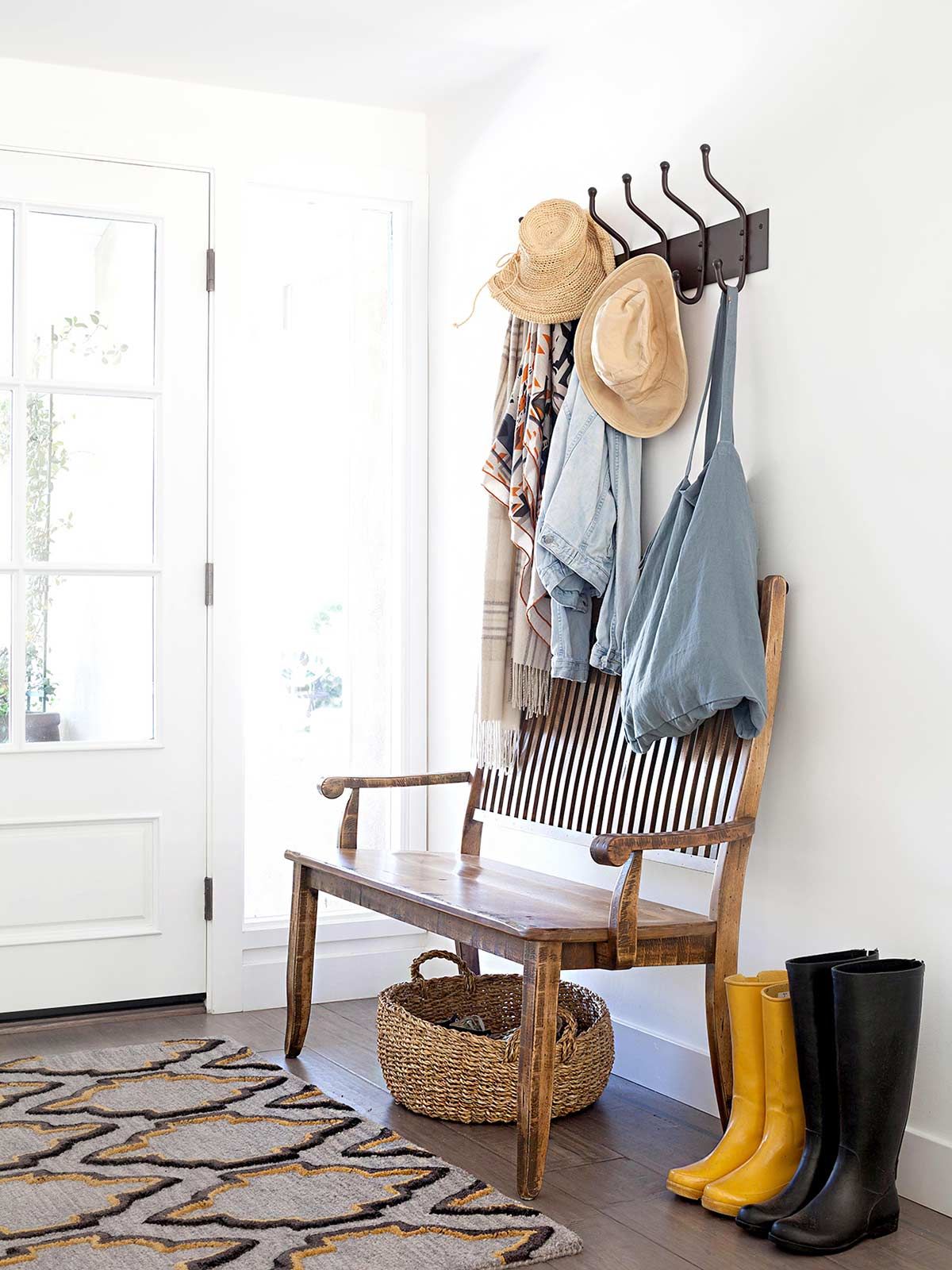 - Gancho de parede, cabideiro, arara ou mancebo: ótimos para pendurar casacos, bolsas e afins. No mercado, encontramos vários formatos, cores e materiais, fica bonito e prático. Existem armários únicos para casacos, que são compridos e estreitos, mais uma opção para quem tem um pouco mais de espaço.