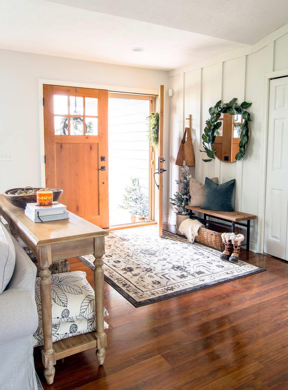 - Passadeira ou tapete: para aquecer o hall e dar um UP no décor. A passadeira é a opção ideal para corredores estreitos, com desenho mais alongado e modelos bonitos no mercado.