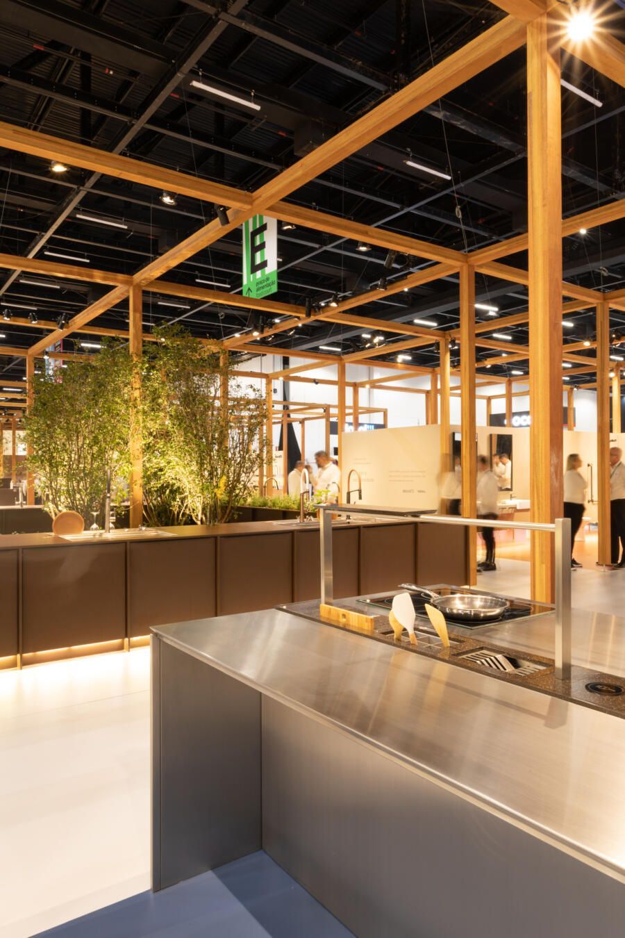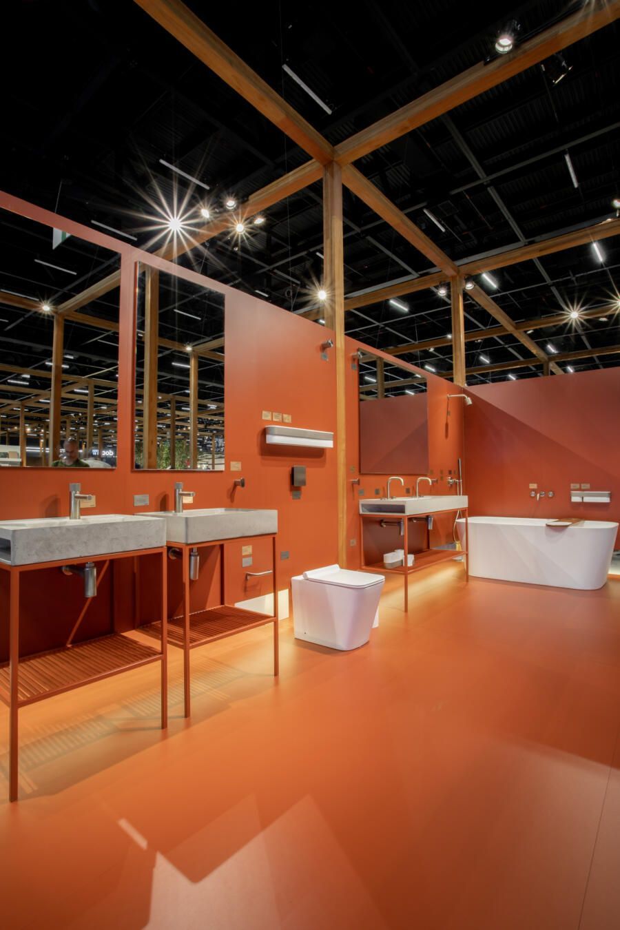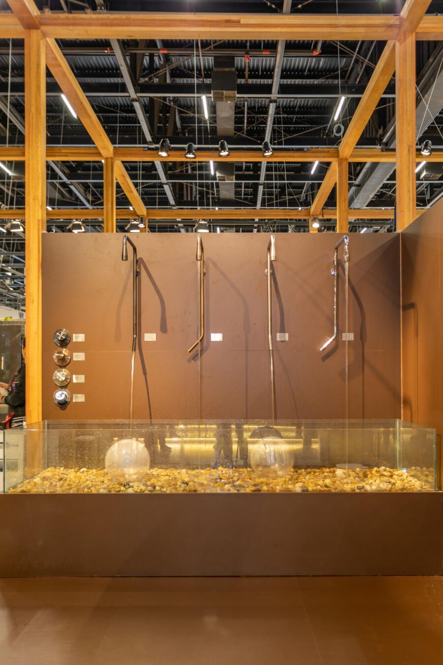Para mostrar todas as novidades, fiz um tour completo pelo estande! O conceito que guiou a Docol na maneira como apresentaram os produtos foi a conexão indissociável entre as matas e a água. Por isso, o Estande Docol era uma verdadeira floresta de pilares de madeira laminada colada (MLC), com mil metros quadrados, projetado pela BLOCO Arquitetos e executada pela Ita Construtora. O mais interessante é que pode ser montado e desmontado para outros eventos, reforçando o compromisso da marca com a sustentabilidade.