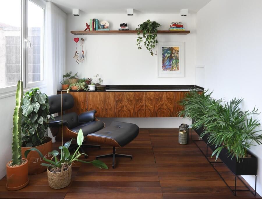 E para quem mora em apartamento, mas sempre sonhou em ter um jardim de inverno, também é possível! No apê da Mayumi Mitsube (no qual já gravamos até mesmo um Open House!), por exemplo, parte da varanda integrada virou um jardim onde cultiva suas plantas, relaxa na poltrona e recebe visitas. Basta escolher um cantinho com bastante incidência solar, ventilação e apostar na criatividade para transformá-lo em um ótimo jardim de inverno.