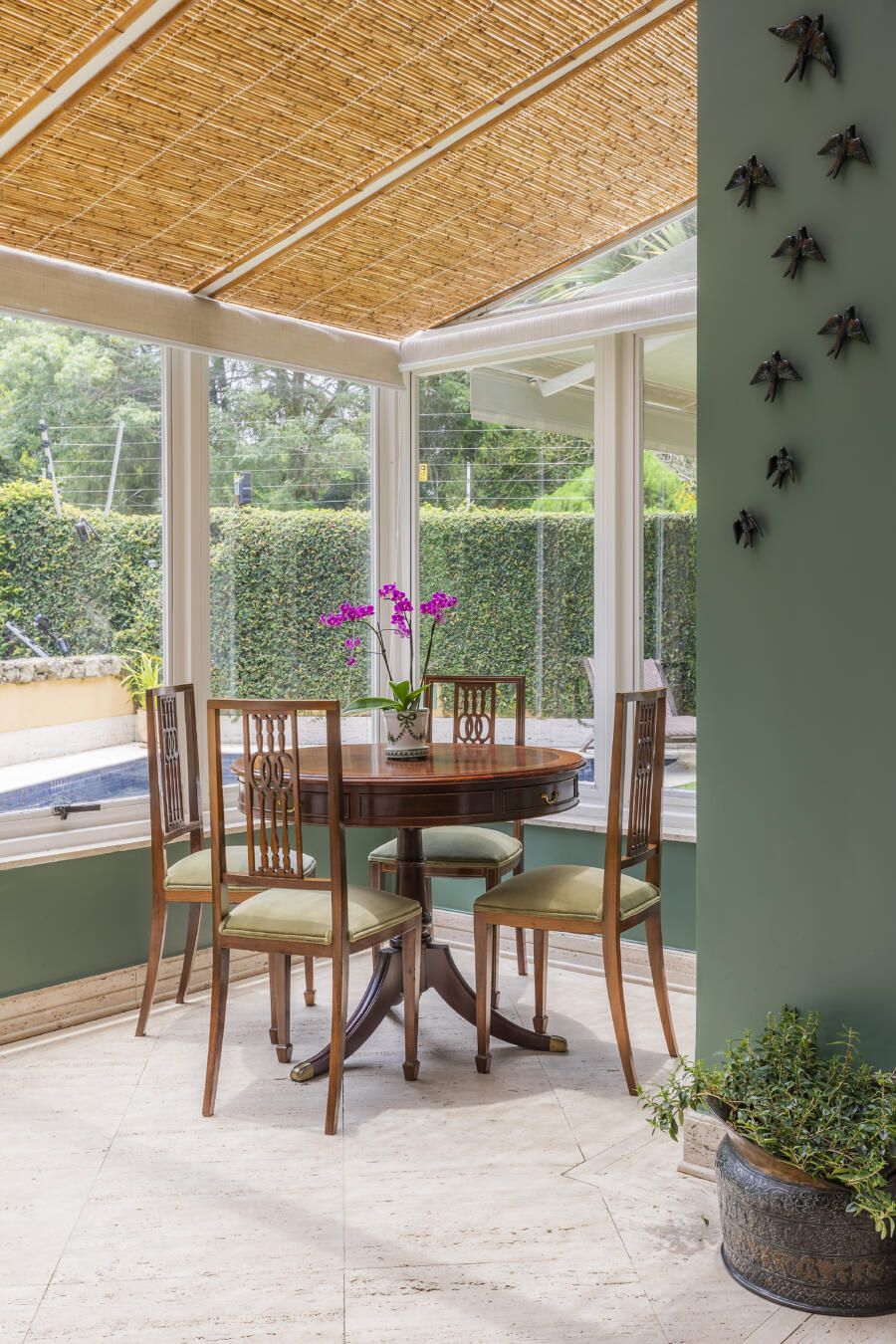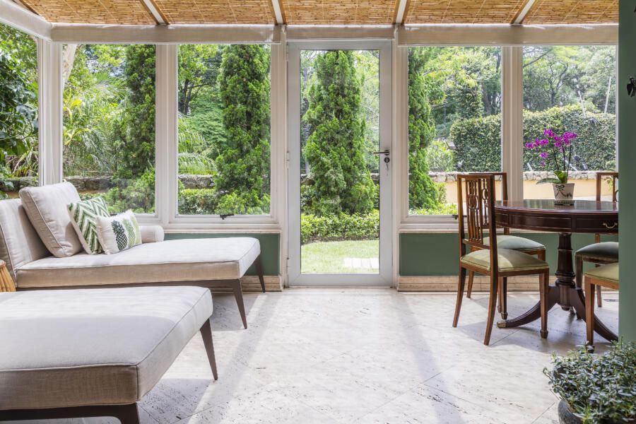 Sua estrutura é tipicamente composta por paredes envidraçadas ou janelas que permitem a entrada de luz solar, criando assim um espaço que integra a beleza da natureza ao conforto do ambiente interno.