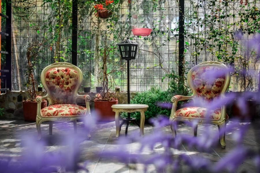 • Decoração Aconchegante: além das plantas, invista na decoração do espaço. Móveis confortáveis, almofadas, e até mesmo elementos como fontes ou pequenas esculturas podem transformar seu jardim de inverno em um refúgio acolhedor.