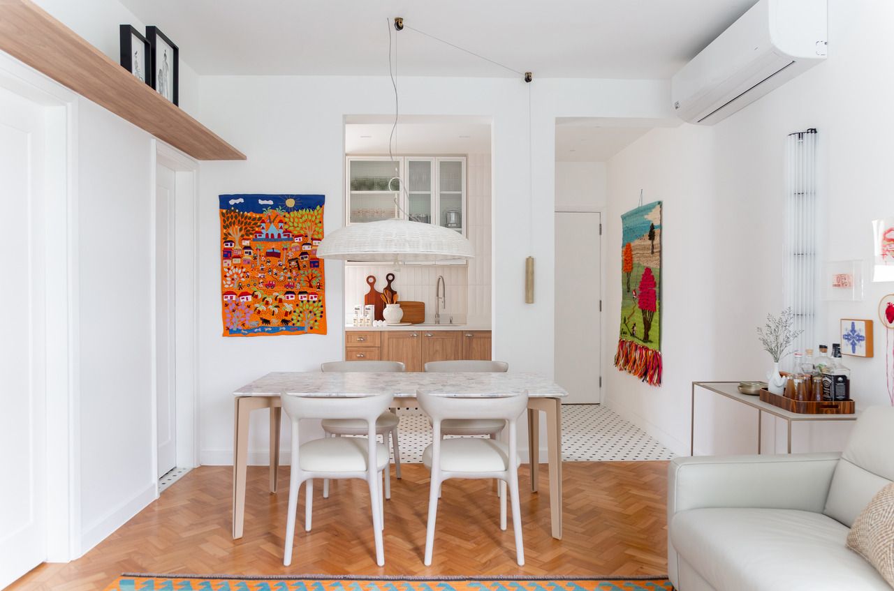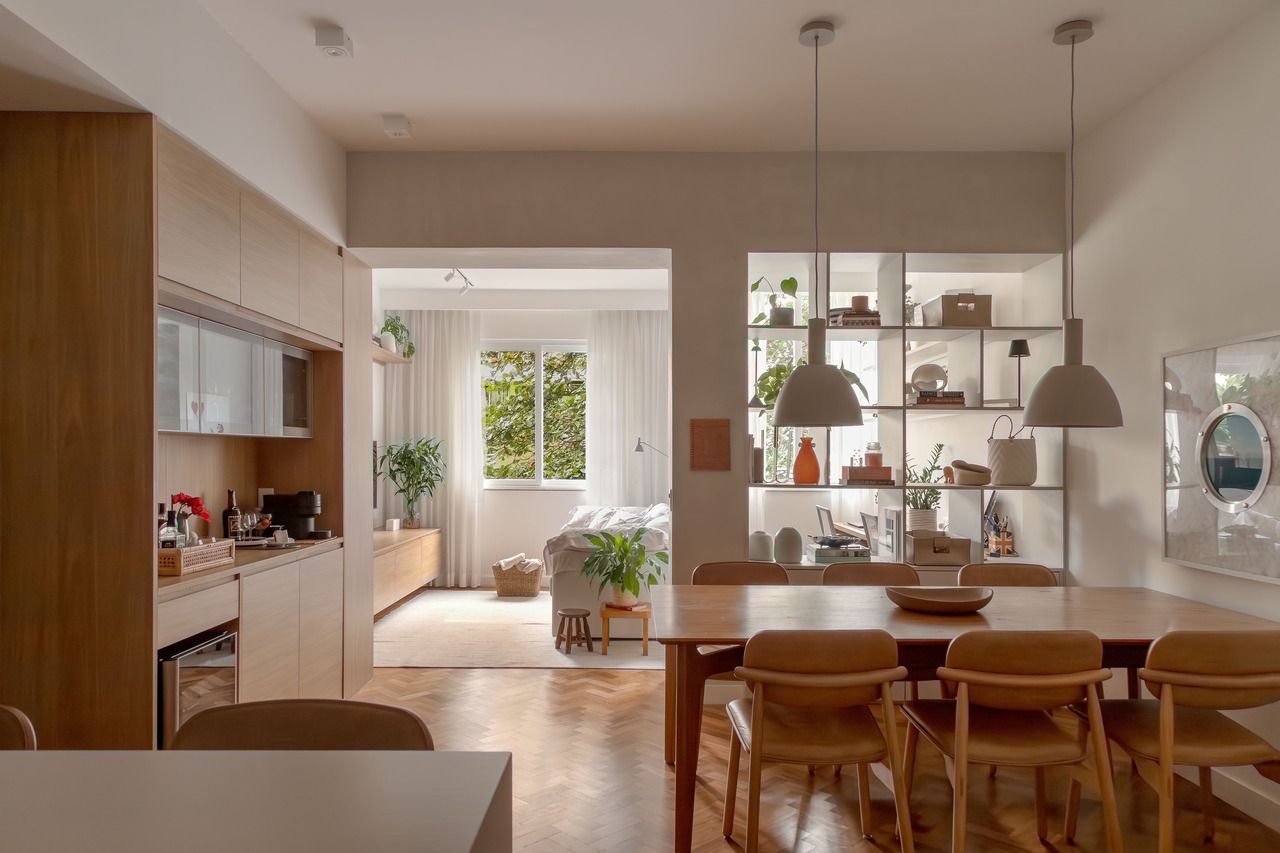 Assinado pelos arquitetos Ricardo Melo e Rodrigo Passos, este apartamento de 60m² no Leblon, na Zona Sul do Rio de Janeiro, nasceu do desejo de transformar um imóvel antigo e sem charme em um refúgio de fins de semana. Comprado por um casal mineiro, com dois filhos adultos já estabelecidos na cidade, o espaço precisava funcionar como casa de férias, ponto de encontro da família e lugar de descanso longe da rotina.