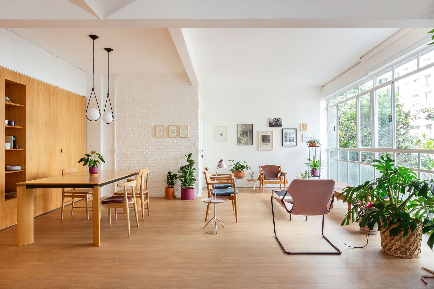 O escritório Erika Queiroz Arquitetos assina o projeto desta cobertura de 1.100m², em Moema, São Paulo. Para o imóvel foram escolhidas matizes quentes e frias. Toques de verde presentes nas plantas e locais pontuais arrematam o décor. A parede verde com boiseries é um dos poucos detalhes com cores vibrantes. Para deixar o ambiente mais [...]