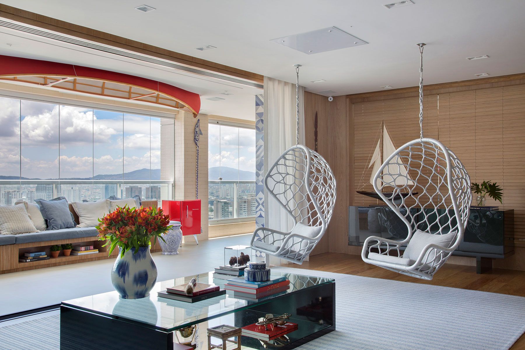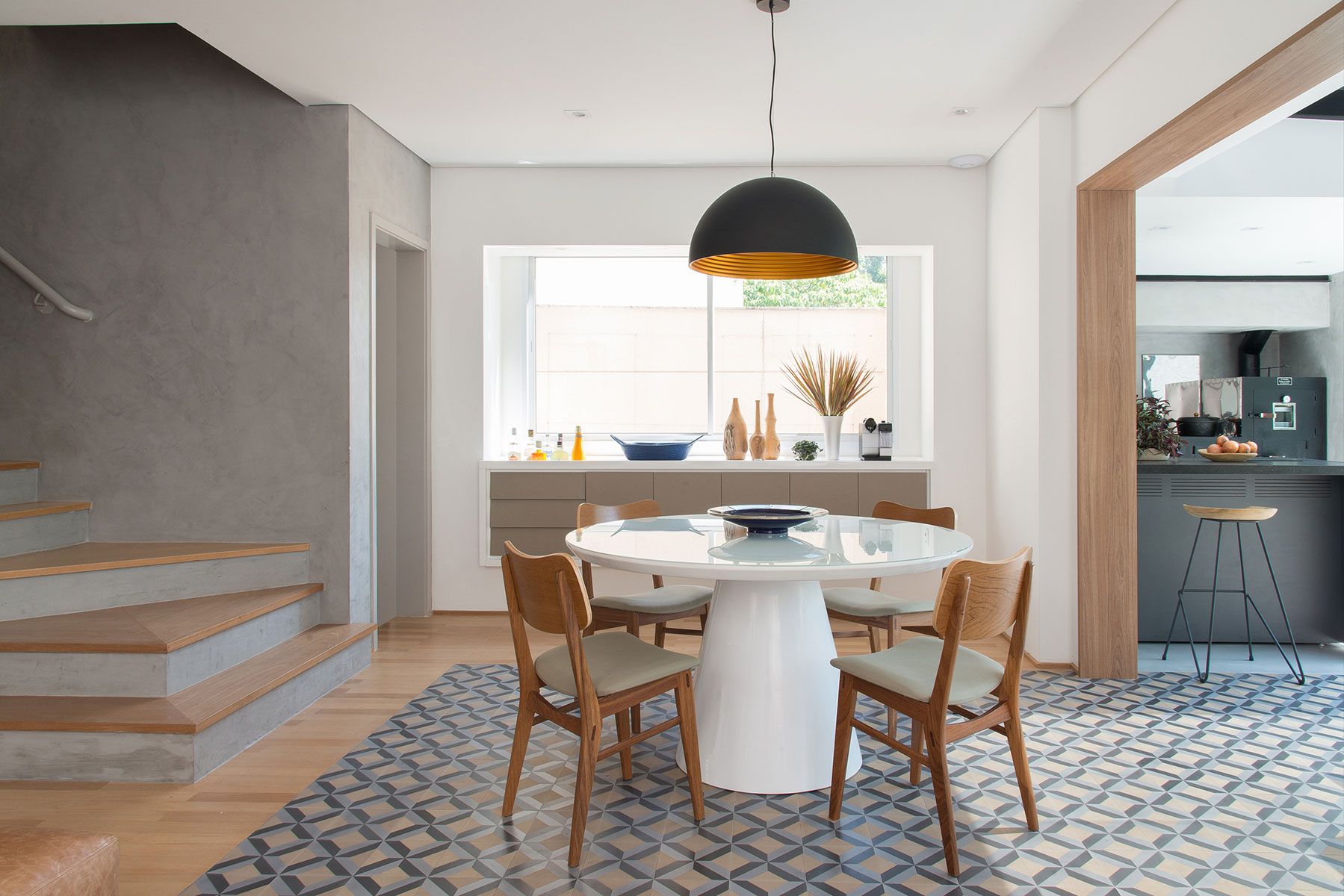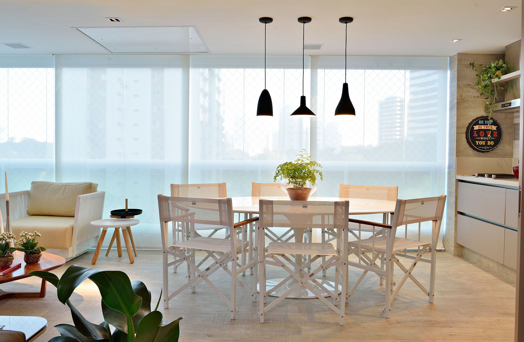 A residência assinada pelo escritório Triarq Studio Arquitetura pertence a um casal de médicos e é o ponto de encontro da família que se reúne com frequência, os filhos e netos do casal. Por esse motivo, as profissionais integraram os ambientes. A sala de estar abre-se para a sala de jantar, a sala de TV [...]
