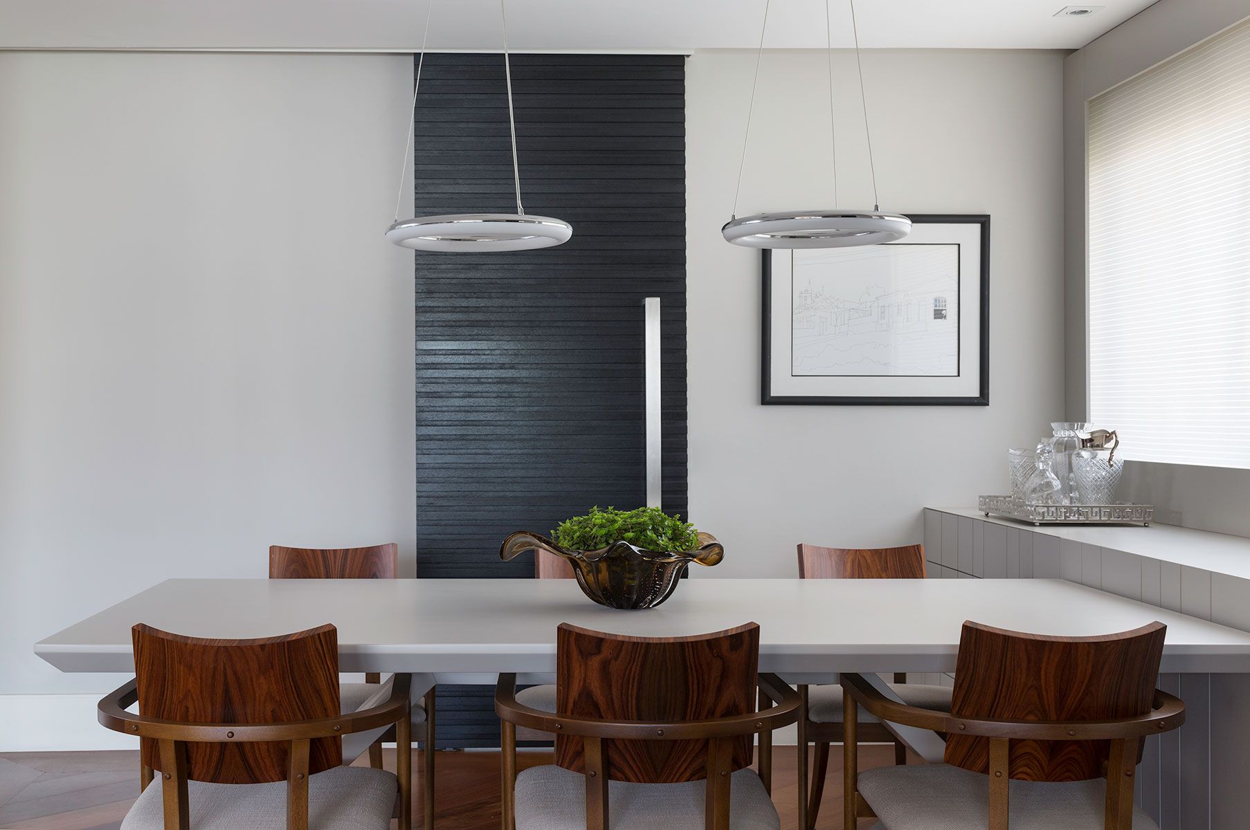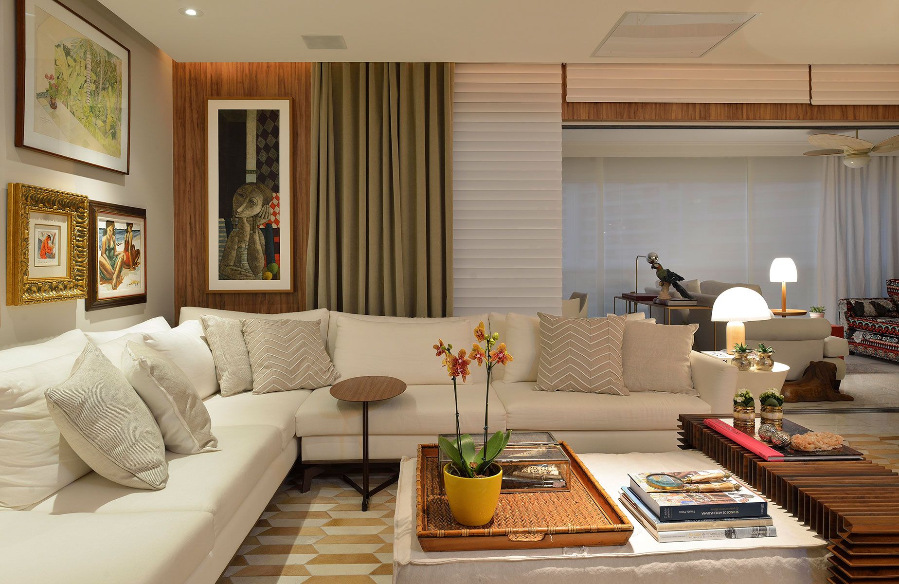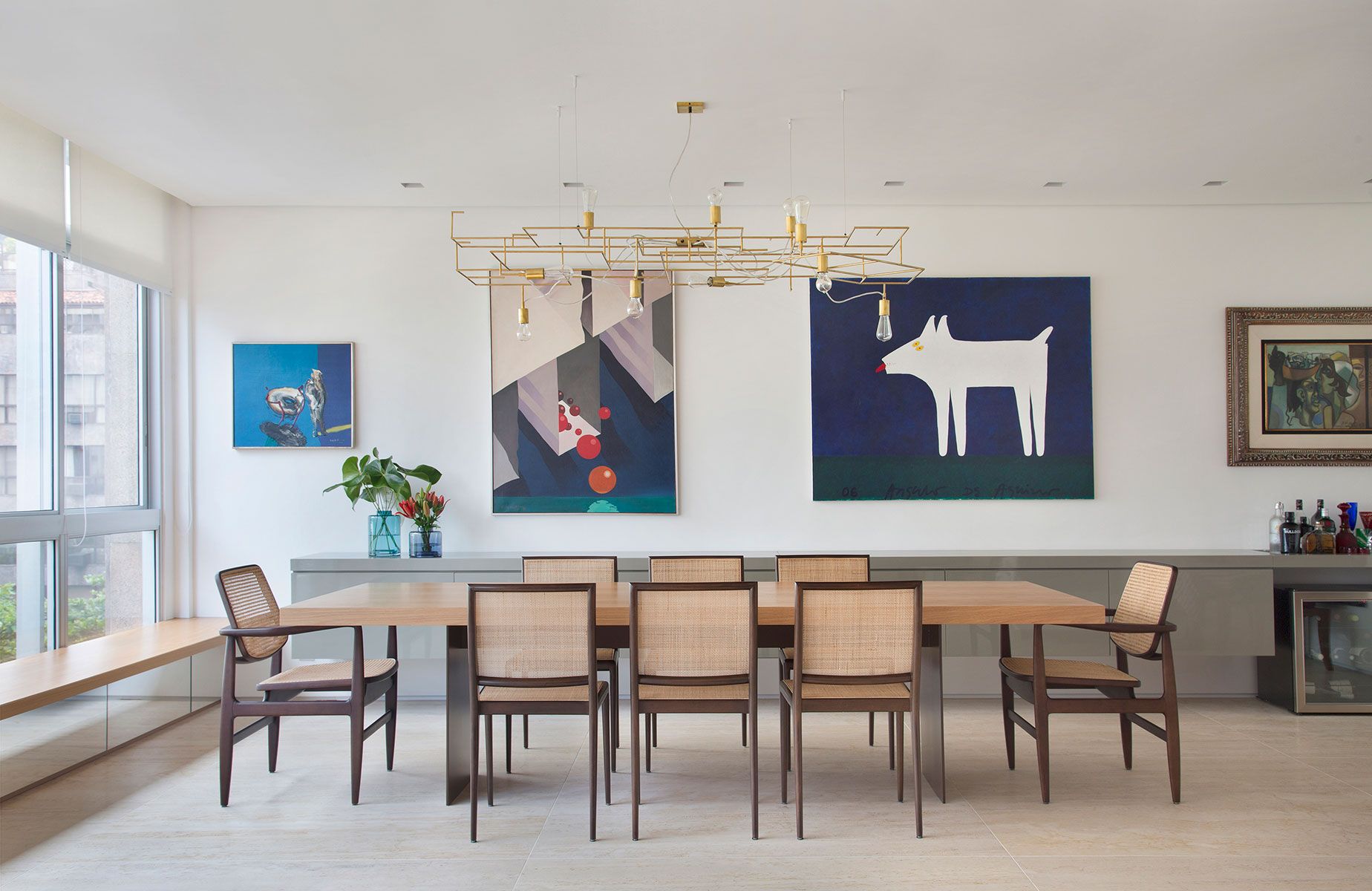 A residência assinada pelo escritório Triarq Studio Arquitetura pertence a um casal de médicos e é o ponto de encontro da família que se reúne com frequência, os filhos e netos do casal. Por esse motivo, as profissionais integraram os ambientes. A sala de estar abre-se para a sala de jantar, a sala de TV [...]