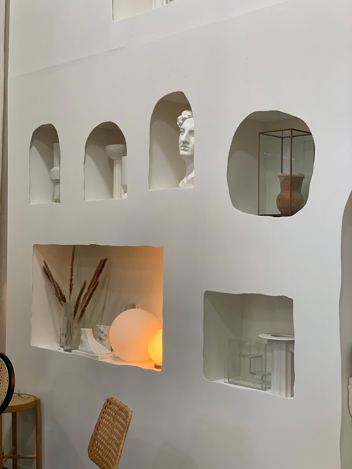 Essas luminárias são feitas com papel de embrulho, da Charlot et Cie. Eles umedecem o papel, amassam para criar a modelagem e colocam uma estrutura internamente… A peça fica resistente e orgânica: