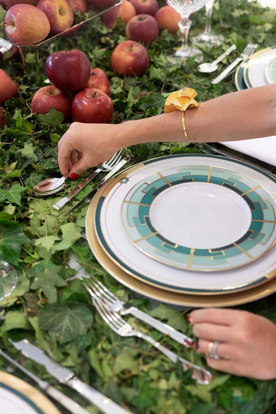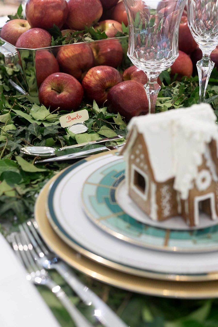 Mas eu queria algo diferente, então resgatei uma lembrança linda que tinha de mesa de Natal feita pela PF Atelie, uma mesa coberta com uma toalha de heras naturais. A Paula e a Fernanda, do PF Atelie, foram maravilhosas e me entregaram em menos de 2 dias essa toalha super especial. Fiquei muito feliz com o resultado, e tive o cuidado de montar uma mesa sem muitos elementos, exatamente para valorizar a toalha.