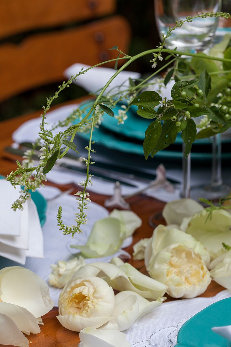 A Lucia Milan, sugeriu a ideia de destadaçar algumas rosas sobre a mesa, mas repara bem que ela não colocou só as pétalas, algumas rosas estão quase inteiras. Achei bem diferente!