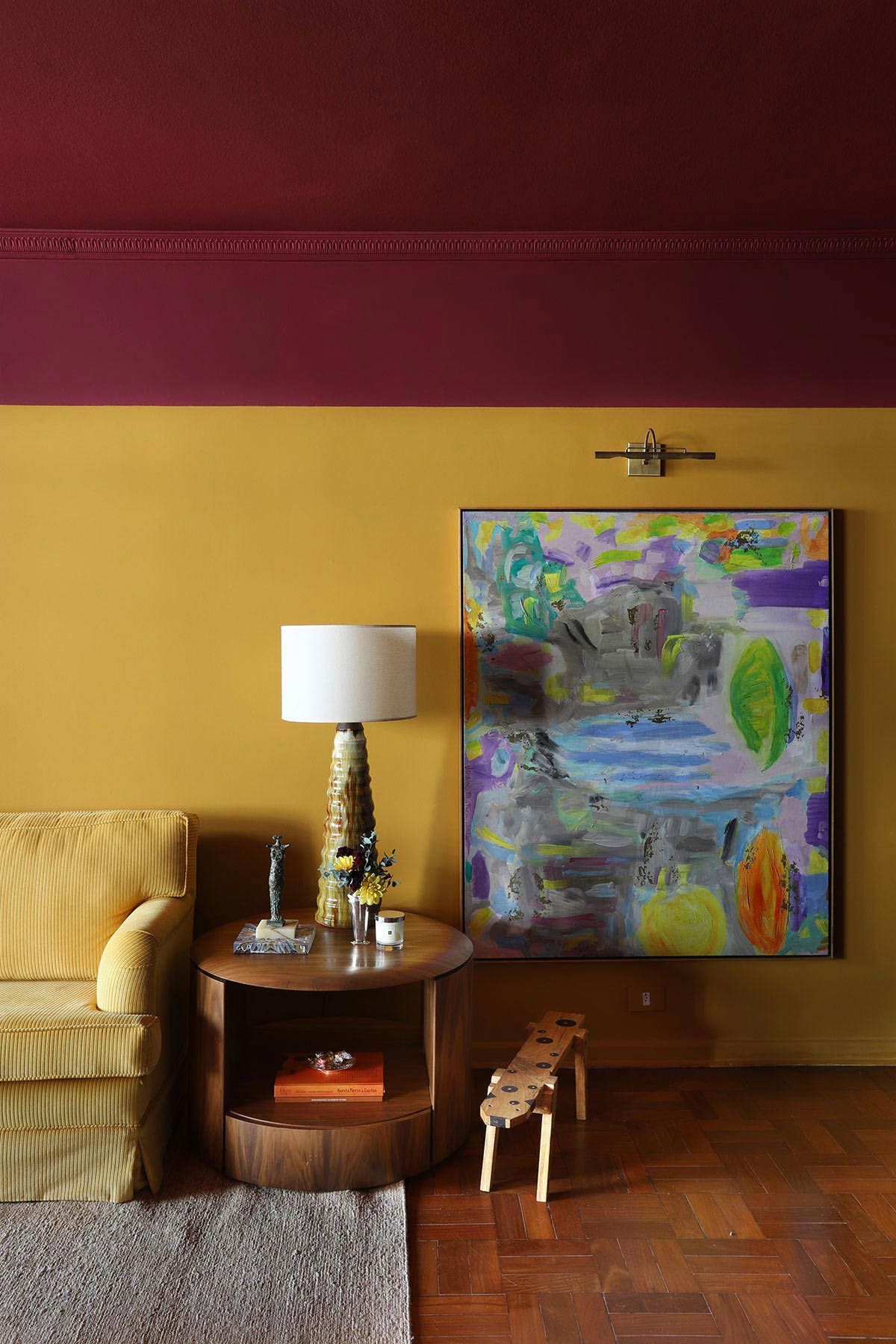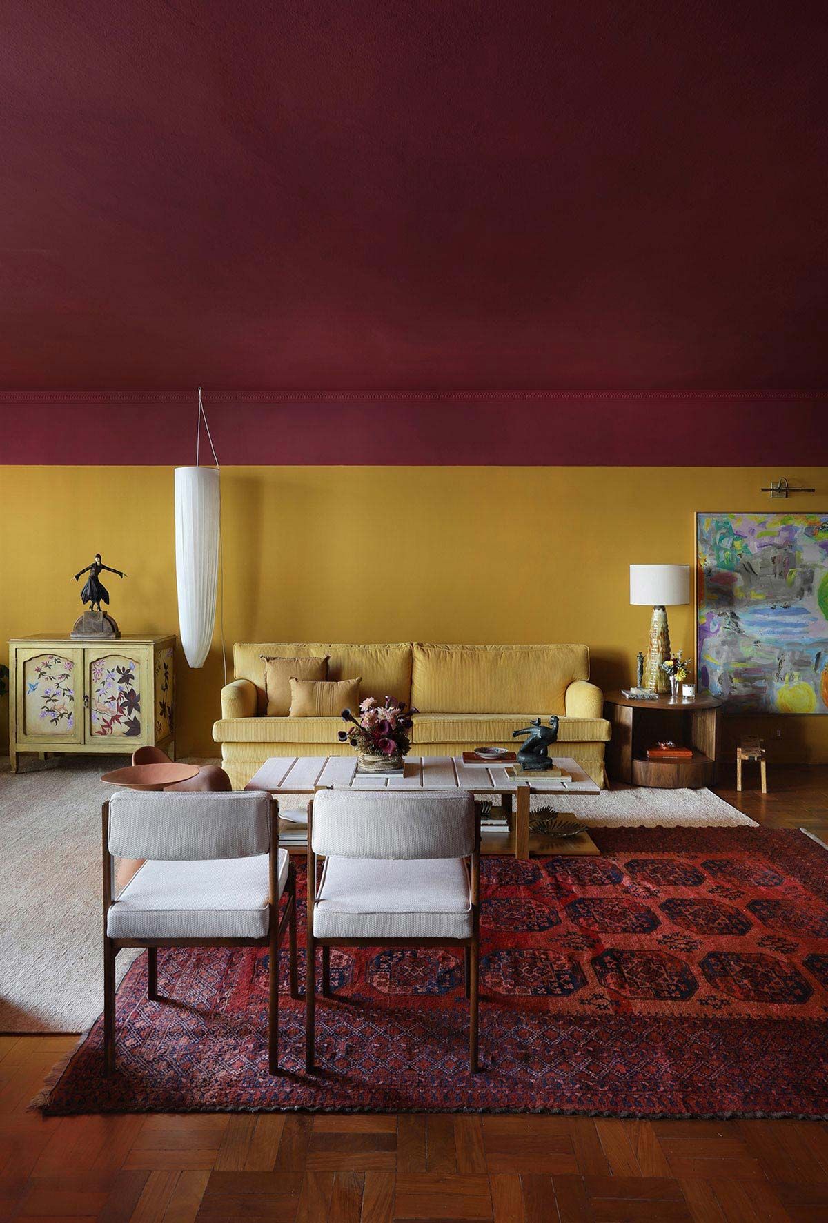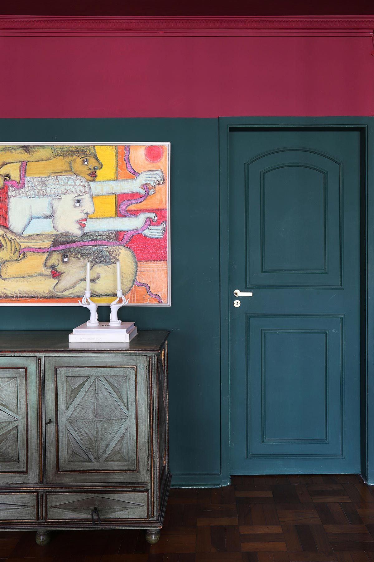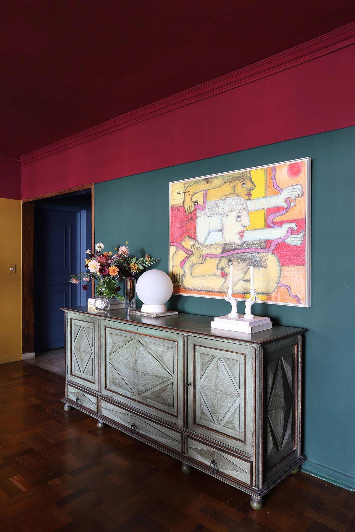 Logo no início da pandemia, recebemos a notícia de que havíamos vendido o apartamento e decidimos vir para cá temporariamente, até nossa casa ficar pronta. Quando chegamos, a morada estava com móveis e peças de decoração dos meus avós e, como precisávamos fazer a mudança rapidamente, optamos por não fazer nenhuma grande reforma, mas sim uma transformação resumida em: pintura, restauro do piso de taco original e pequenos ajustes de iluminação e hidráulica.