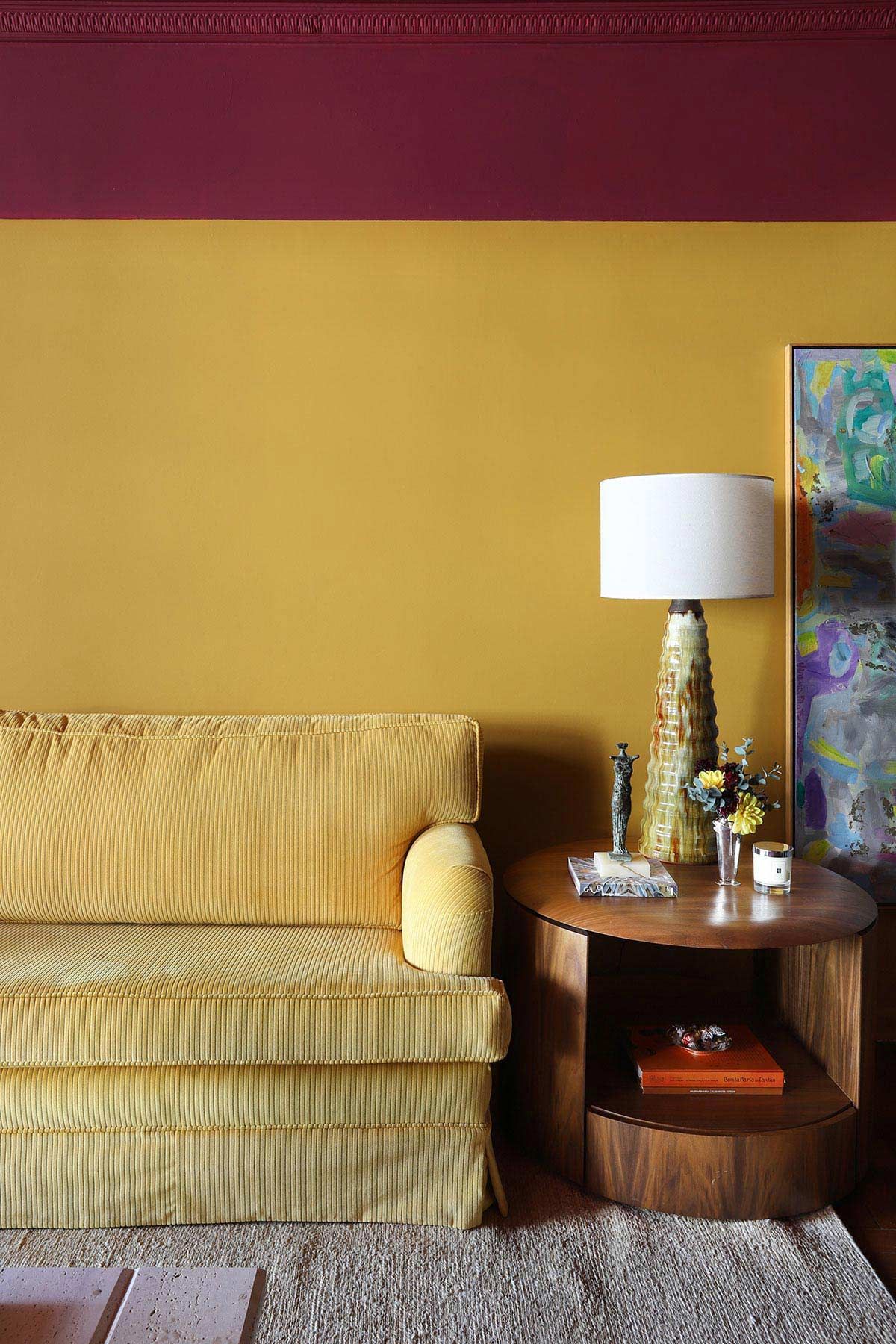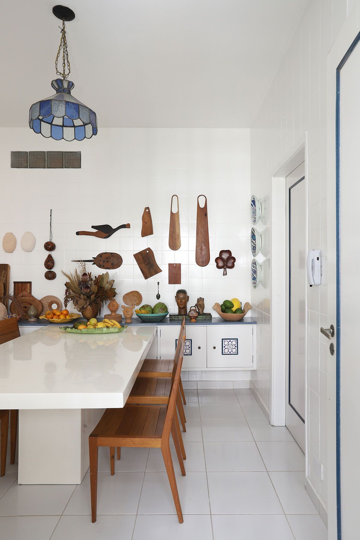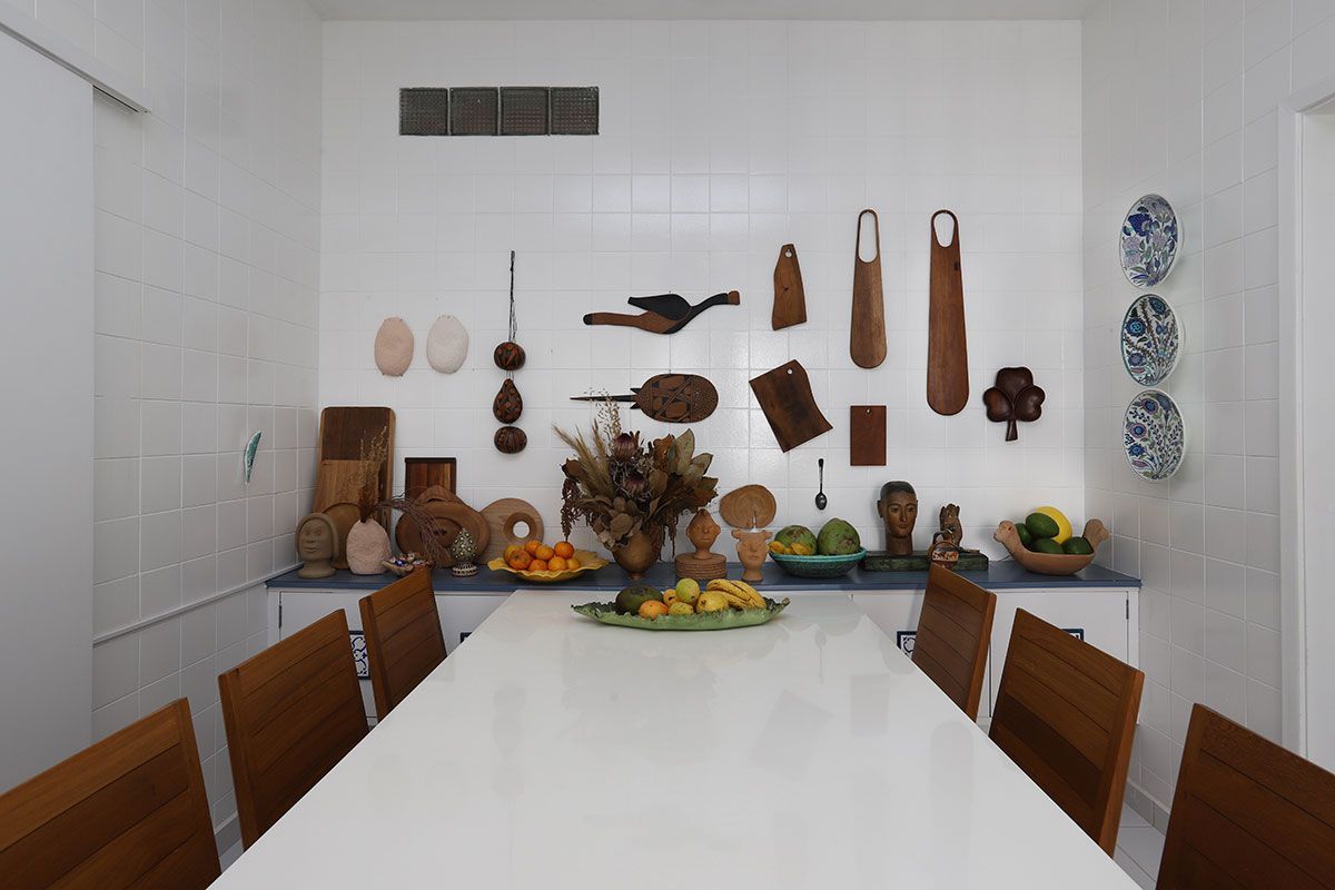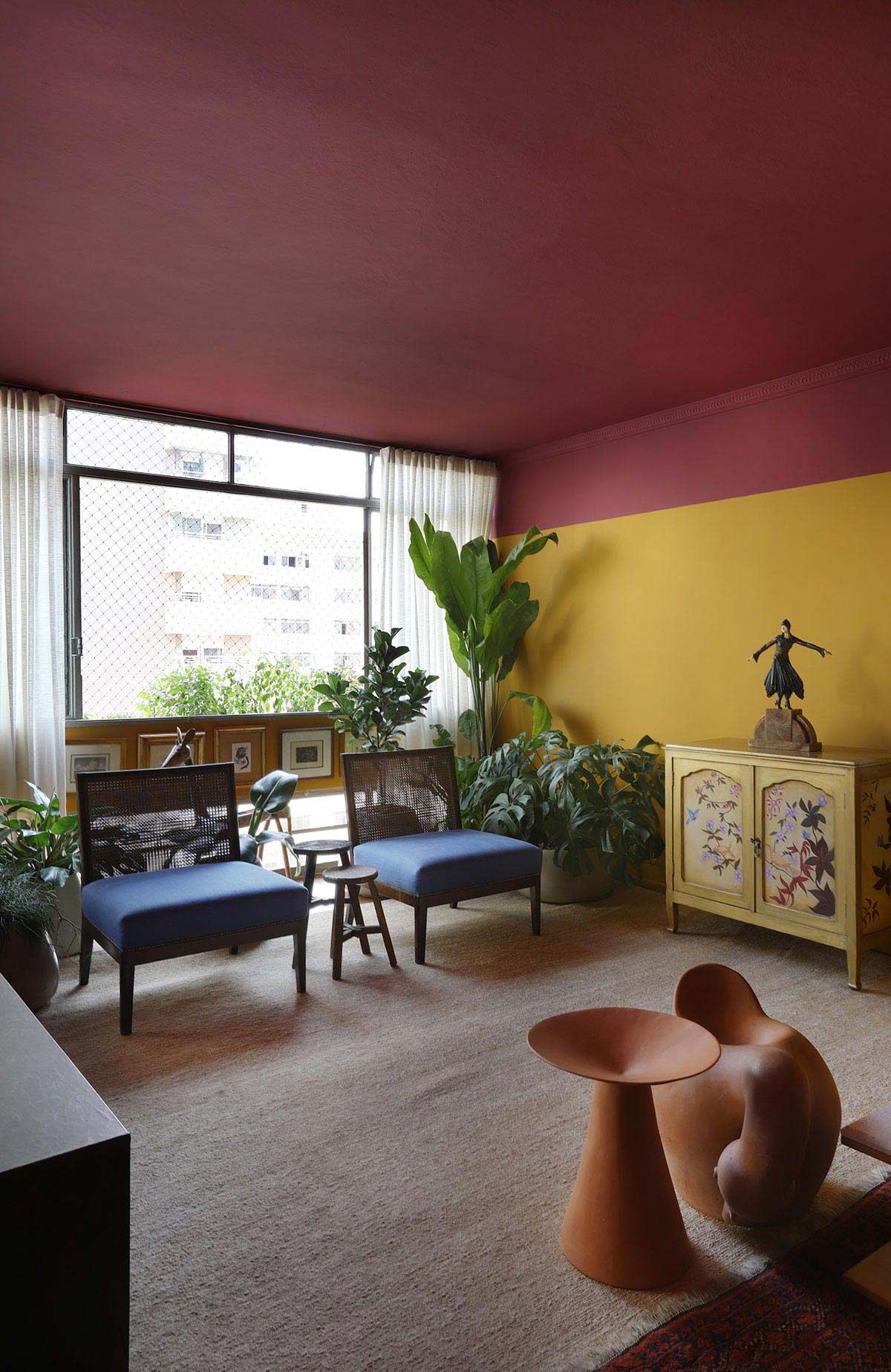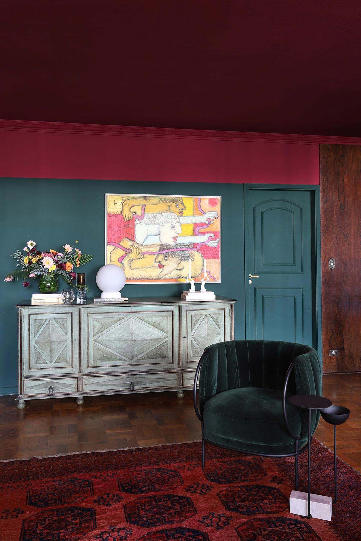Logo no início da pandemia, recebemos a notícia de que havíamos vendido o apartamento e decidimos vir para cá temporariamente, até nossa casa ficar pronta. Quando chegamos, a morada estava com móveis e peças de decoração dos meus avós e, como precisávamos fazer a mudança rapidamente, optamos por não fazer nenhuma grande reforma, mas sim uma transformação resumida em: pintura, restauro do piso de taco original e pequenos ajustes de iluminação e hidráulica.