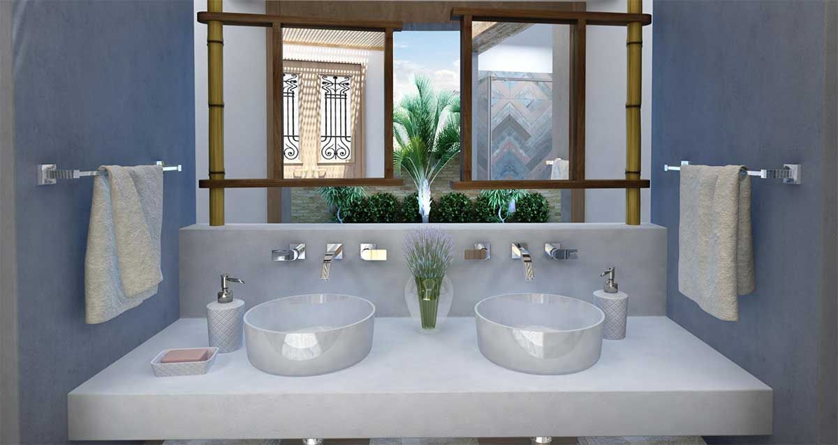 Essa banheiro que eu desejo é aberto para o verde, convidativo, conectado com a natureza e muito, muito easy going. Exatamente como eu falei neste post AQUI.