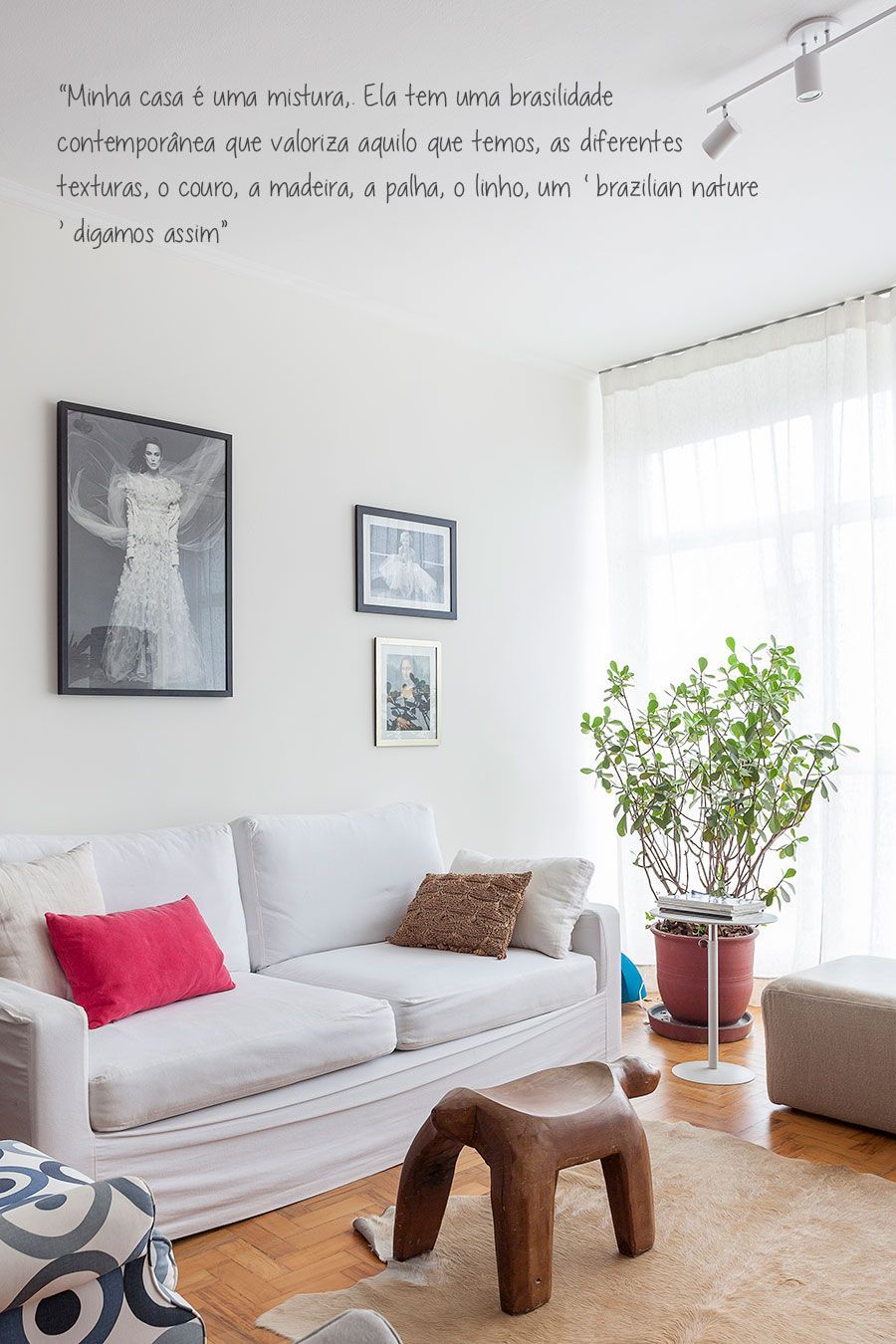 Bom, mas não é só isso. O apartamento de 140m² é bem, é central, fica pertinho da 9 de julho e há alguns metros da Alba Barbosa Casa. Vou te contar: o dono do apê é o André Ribeiro, neto da Alba Barbosa, senhora que começou costurando coisas para casa em sua lavanderia e que deu origem a ateliê que hoje leva seu nome e onde trabalha boa parte de sua família. De lá saem cortinas, colchas, toalhas, almofadas… enfim, tudo o que leve tecido e bom gosto. Haaa e uma informação altamente relevante: o André é irmão da Elisa, da AB Casinha, que me ajudou com todo carinho a montar a festinha de 1 ano do Bento. Apresentações feitas, vamos ao apê rssss