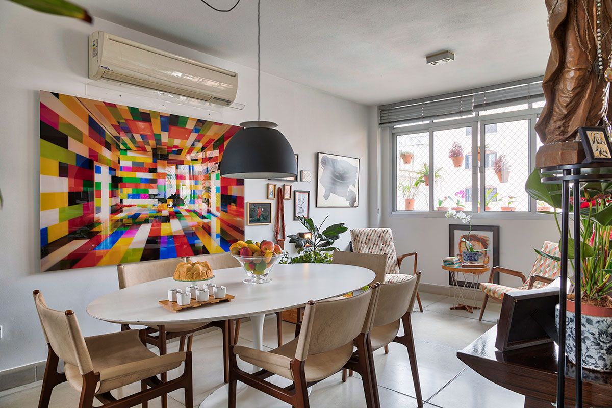 Quando a designer de interiores Anna Lucia Azevedo decidiu procurar um novo lar, foi buscar o imóvel ideal no mesmo bairro onde sempre viveu em São Paulo. Em pouco tempo, encontrou um apartamento de 200 m² em um prédio antigo que parecia ter bastante potencial. À primeira vista, se encantou com os janelões na sala de estar que permitiam a entrada de luz natural durante grande parte do dia. Olhando com mais atenção, percebeu que poderia transformar a planta antiquada dando a ela uma configuração mais moderna, com menos paredes divisórias e mais espaços de convivência. E foi exatamente isso que ela fez!