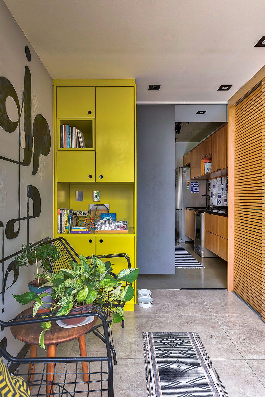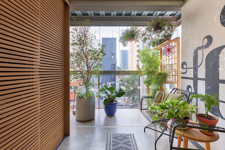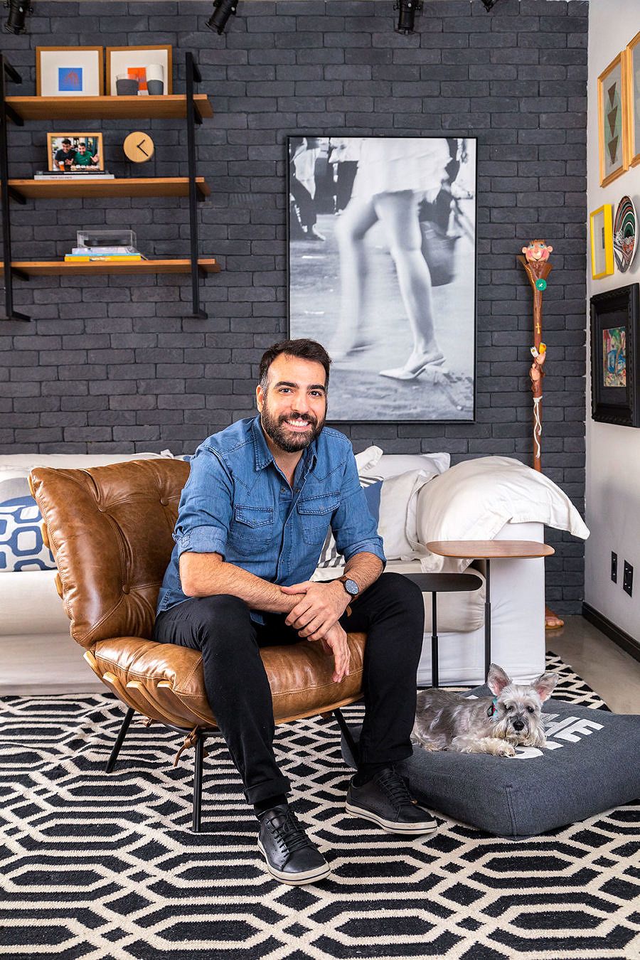 Imagina um apê aconchegante, que te convida a se jogar no sofá e a ficar por horas e horas assistindo à filmes, papeando e se divertindo. Um ninho nas alturas com uma varanda que mais parece quintal, abraçada pelo verde das plantas pendentes, das árvores frutíferas e hortinha. Um espaço amplo, iluminado, que tem a cozinha integrada à mesa de jantar por um banco de alvenaria onde todo mundo se amontoa enquanto o morador prepara o jantar. Este cenário delicioso, cheio de vida e pequenices do cotidiano tem endereço fixo: o lar do arquiteto Bruno Reis.