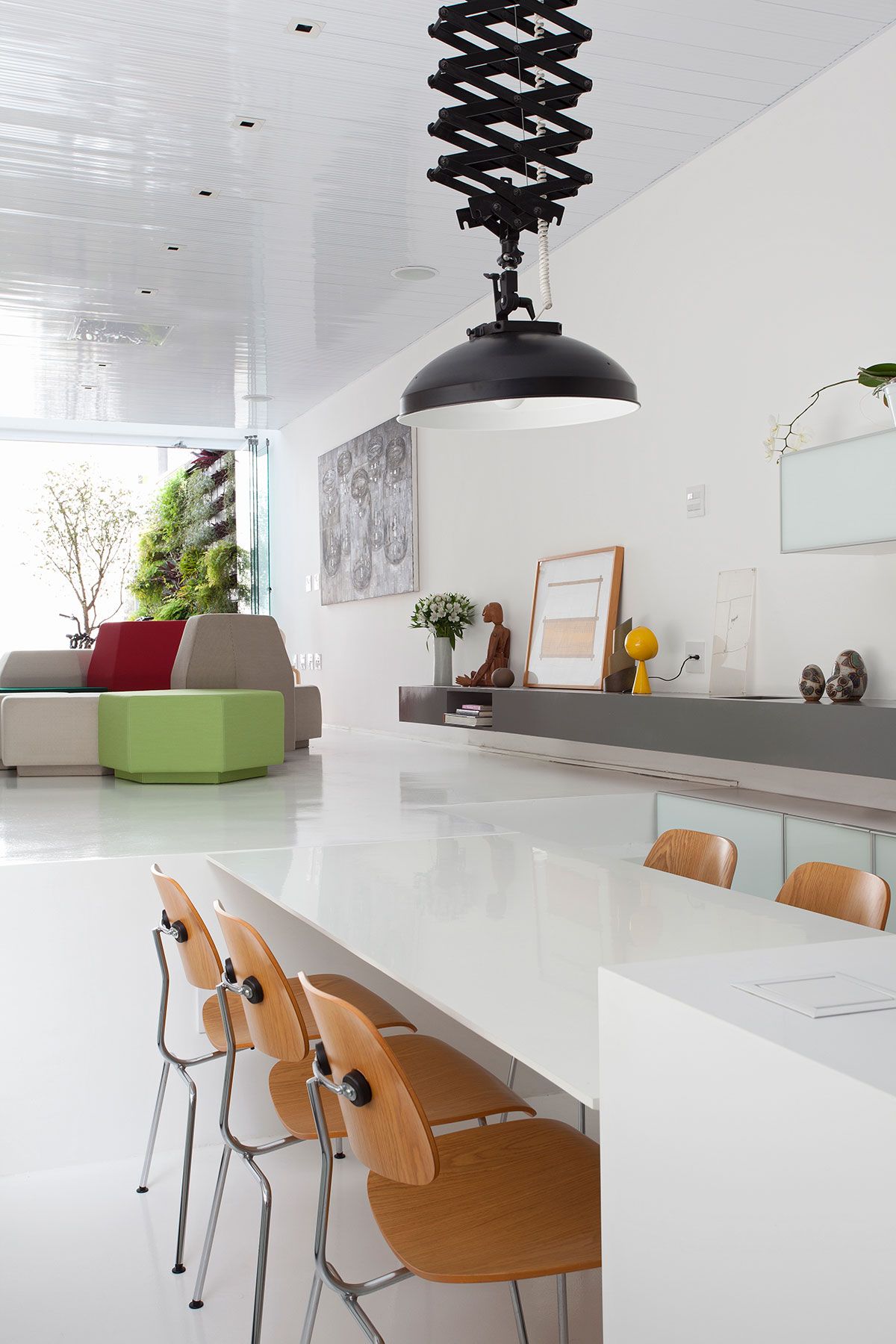 Muito criativa !! Nunca imaginei casa começando pela cozinha e a mesa na linha reta do chão da sala. Surpreende pela beleza e originalidade. Bjs