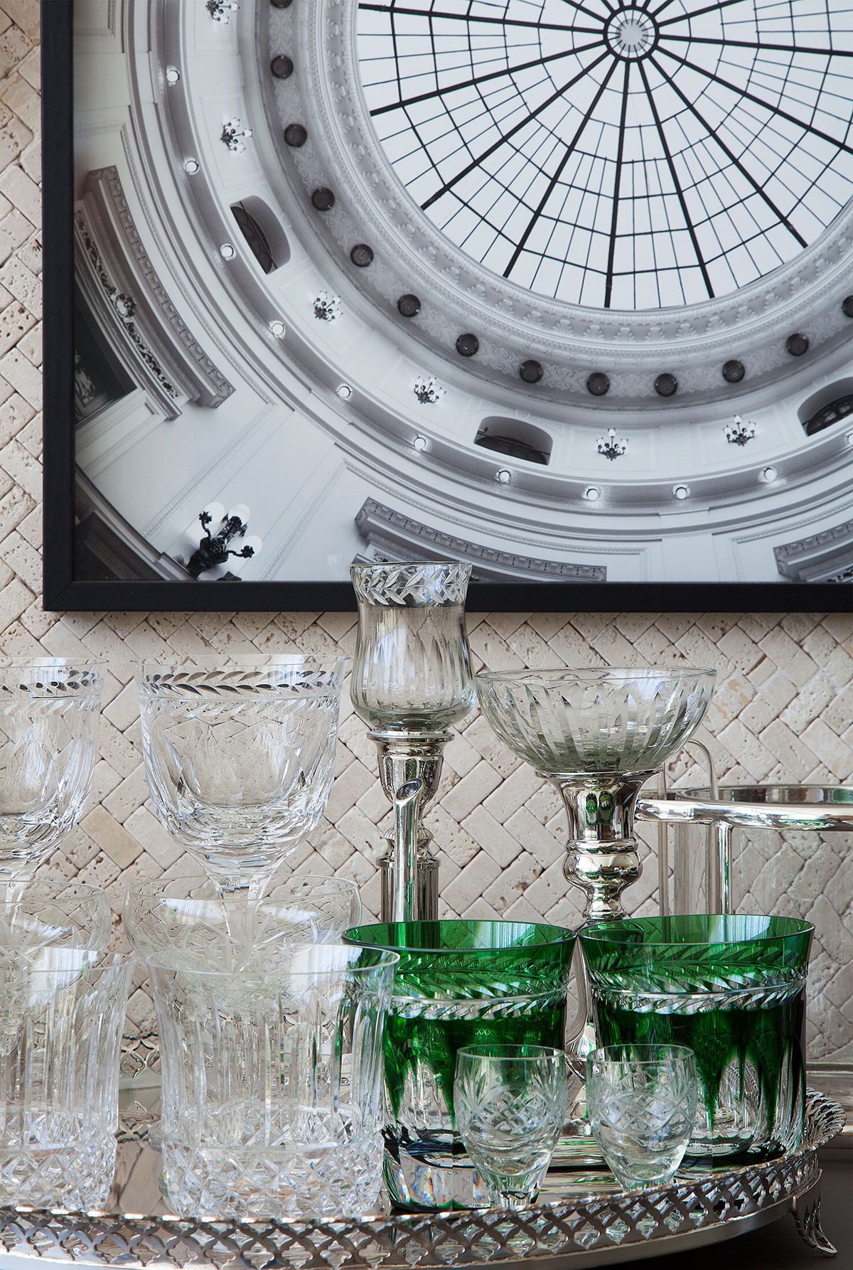 Os objetos herdados por entes queridos são parte importante da decoração do apê, assim como algumas lembranças que o casal guarda com carinho. Na estante da sala, ao lado de peças mais valiosas, ficam as rolhas das garrafas de vinho que eles apreciaram juntos desde o início da relação. Eles anotaram em cada uma delas a data e a ocasião onde o brinde foi feito para poderem recordar desses momentos sempre que quiserem. Não é o máximo?! Já na área do bar as taças de cristal que eram da bisavó do Gustavo ficam à disposição para serem utilizadas – e eles usam mesmo!