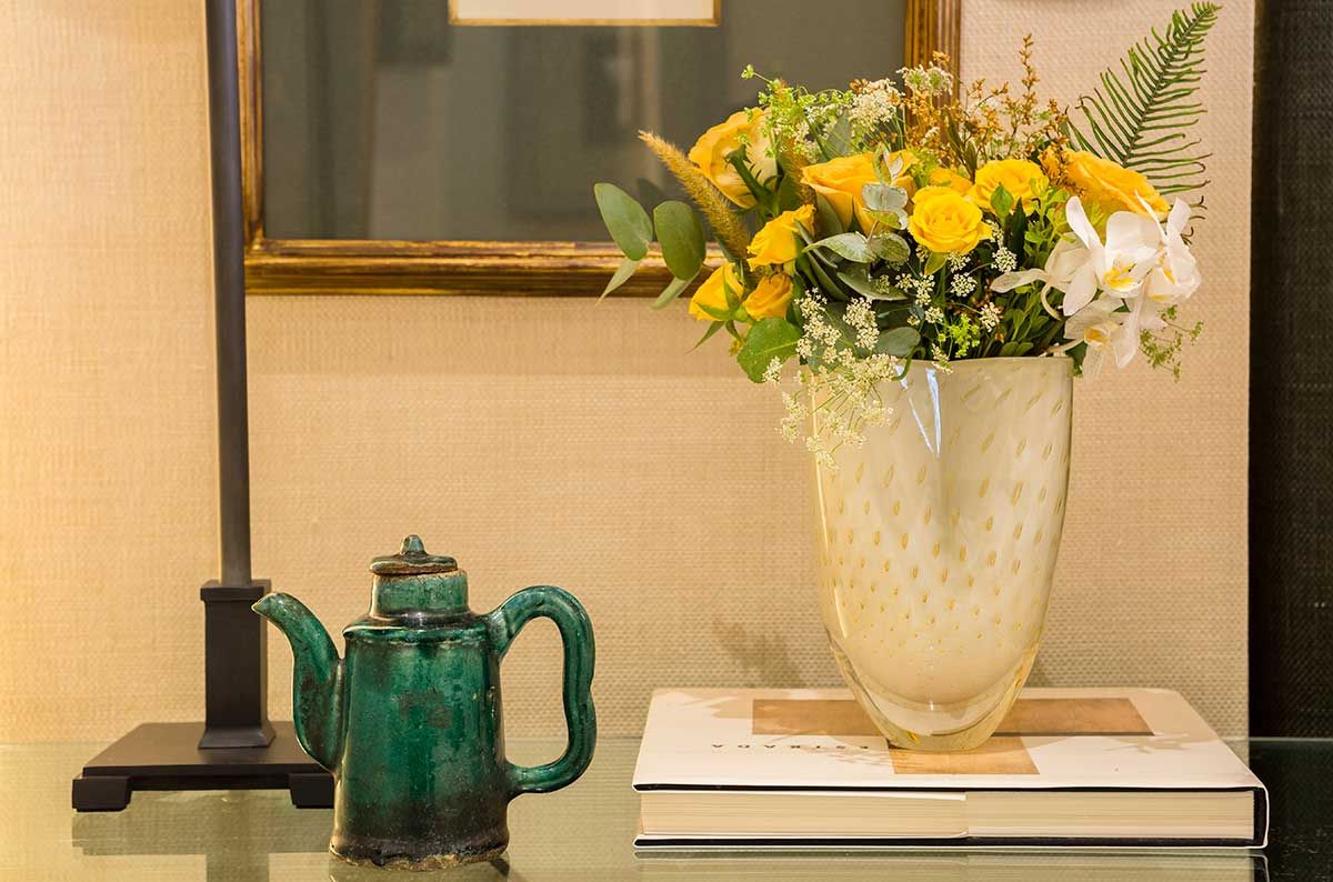 O quarto da Fernanda é super cozy, e eu achei que ficou ainda mais <3 com esses 2 vasinhos lindos em formato de trevo da Cristais Cá d’Oro e com as flores da querida Sinha Flor Jardim.