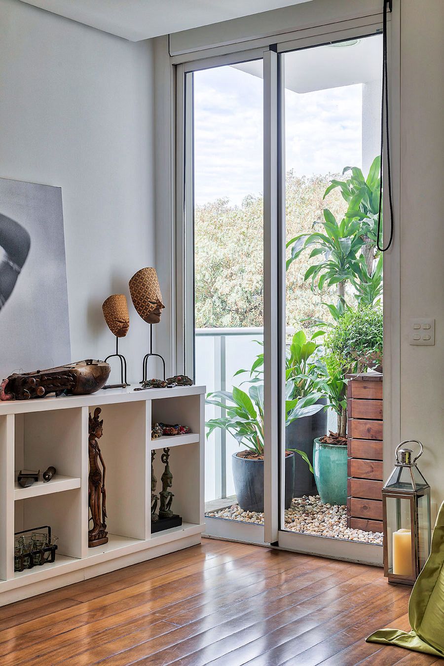 A vista para o verde do entorno faz a gente duvidar que o apartamento da Gisela Gaia fica aqui mesmo em São Paulo. A copa das árvores, os passarinhos cruzando o céu de fim de tarde, o pôr do sol visto em sua plenitude, sem que as construções obstruam a paisagem… Tudo lá contribui para a sensação de bem-estar. E olha que não é sempre que encontramos lares que permitam essa imersão diária com a natureza, viu? A Gisela e o Silvio são realmente sortudos! Toda essa história começou há seis anos, quando o casal se mudou para o apê em frente ao Parque Villa-Lobos. De cara, ambos se apaixonaram pela localização, vista, arquitetura do prédio… só não curtiram mesmo o visual dos ambientes internos.