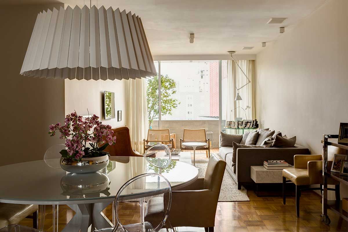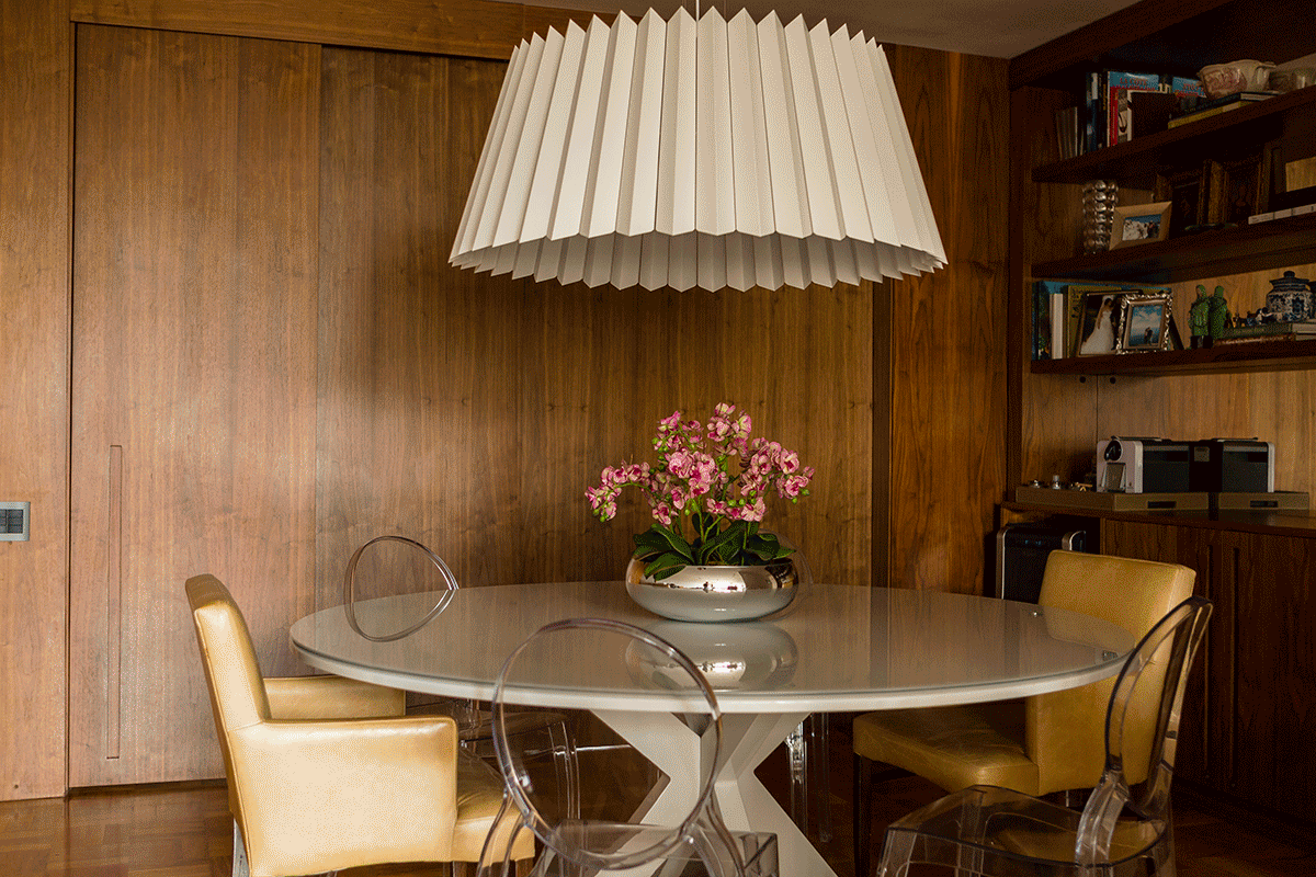 Pois bem, ele mora aqui, neste apê nos Jardins aqui em São Paulo, com uma sala de jantar integrada a uma cozinha linda, uma sala acolhedora e um projeto pensado para a família que agora recebeu mais um novo membro.