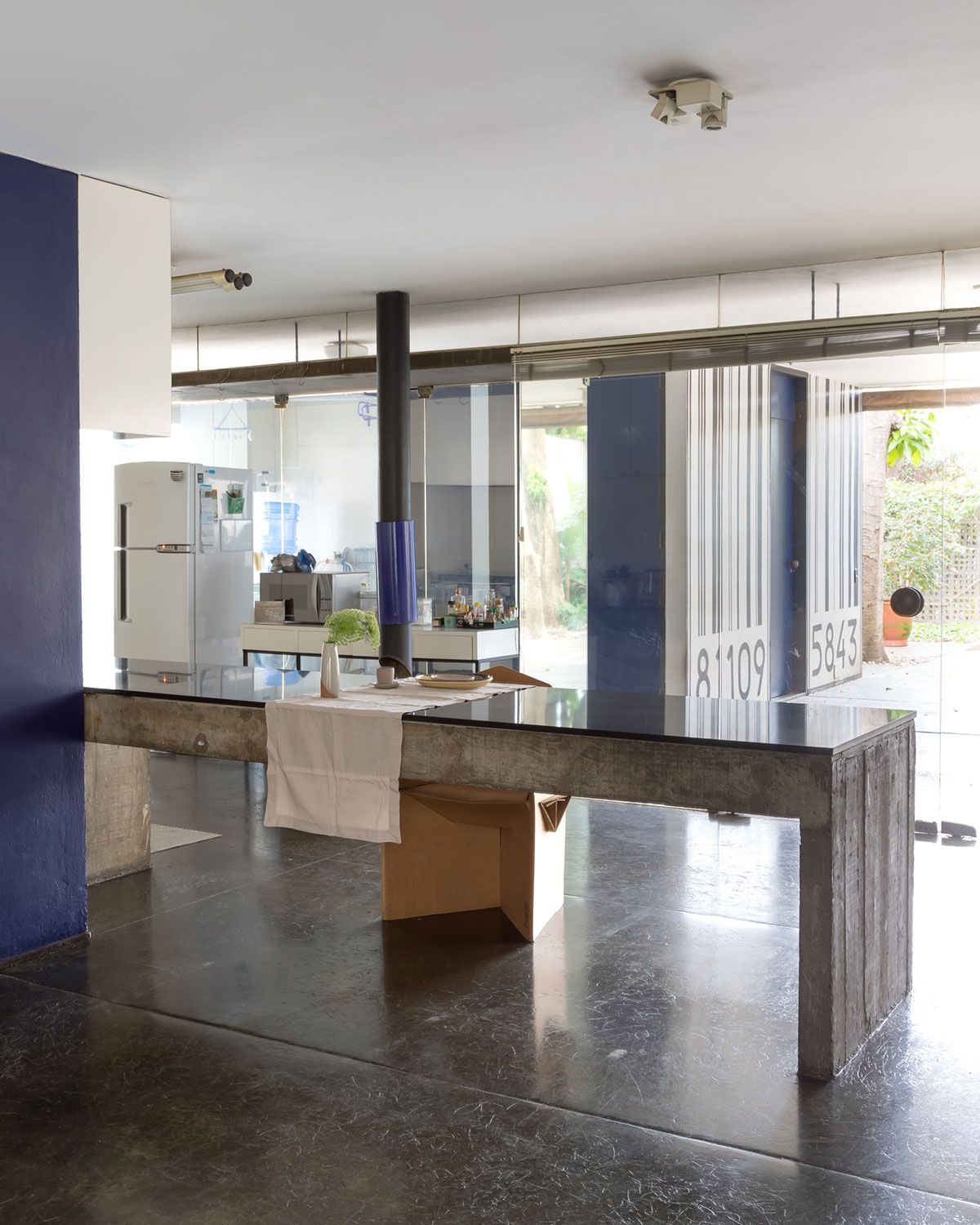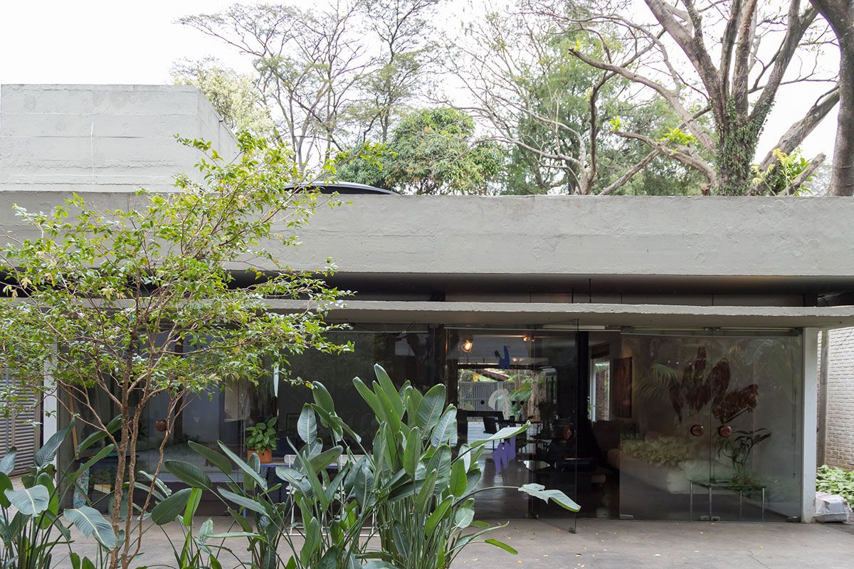 A Helena já considerava a paisagem urbana de São Paulo única, mas achava que morar em uma casa projetada por um arquiteto de renome nunca caberia no seu orçamento. Foi então que um amigo encontrou o tesouro que hoje eles chamam de lar: uma casa modernista de Paulo Mendes da Rocha erguida em concreto e vidro. “A gente conseguiu milagrosamente se mudar pra cá depois de um tempo e estamos aqui há um ano e meio”, relembra.