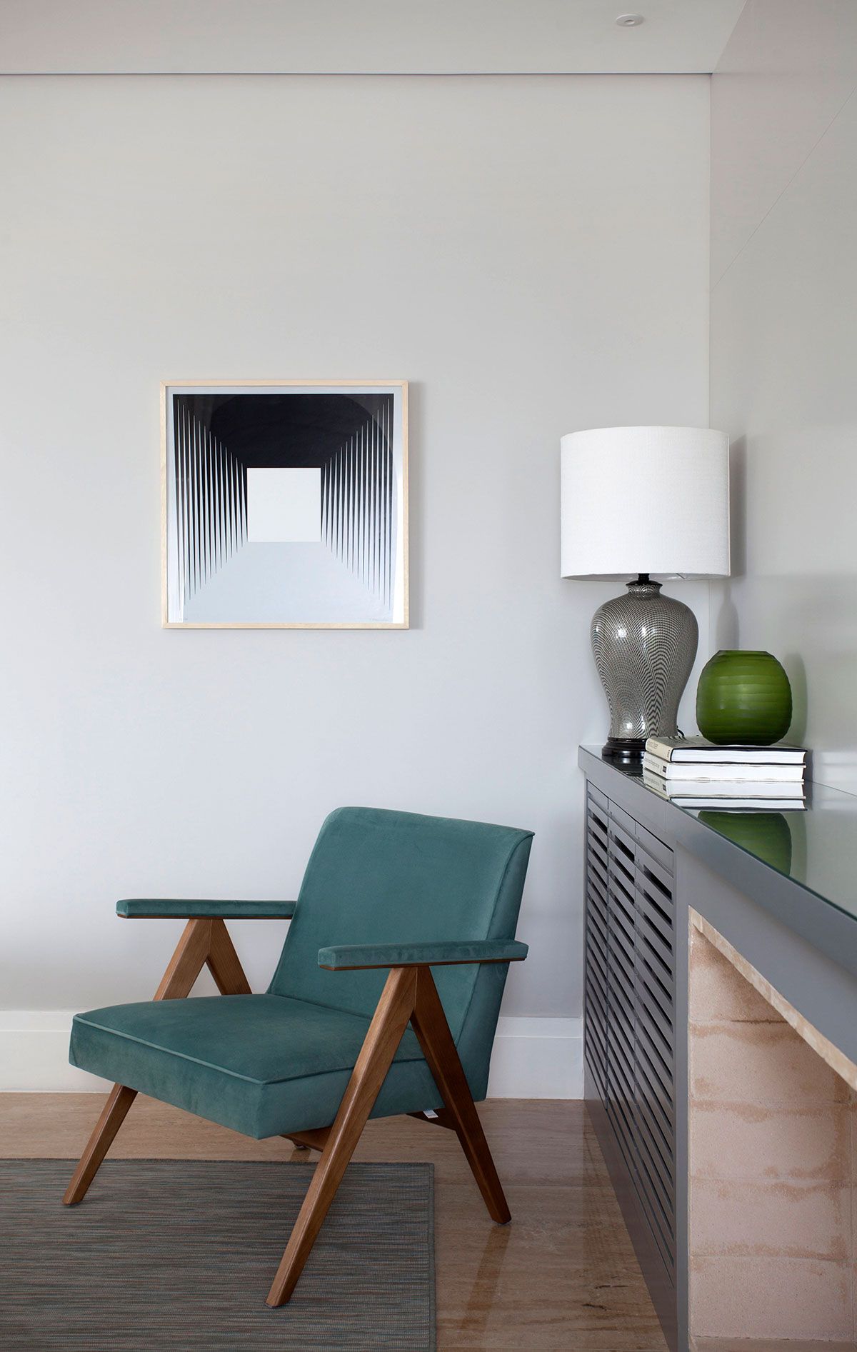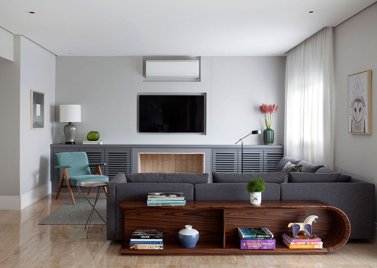 Mestre em trabalhar com as cores sem sobrecarregar o visual dos ambientes, o arquiteto e designer de interiores Robert Robl foi acionado pela Patricia e pelo Juliano para desenvolver o projeto do apartamento de 280 m². O espaço estava vazio e cru, como uma tela em branco esperando para ganhar forma de lar. Seguindo uma linguagem moderna com perfume retrô, o Robert propôs uma agradável brincadeira de cores aproveitando peças que os proprietários já tinham, mas não sabiam como utilizar adequadamente.