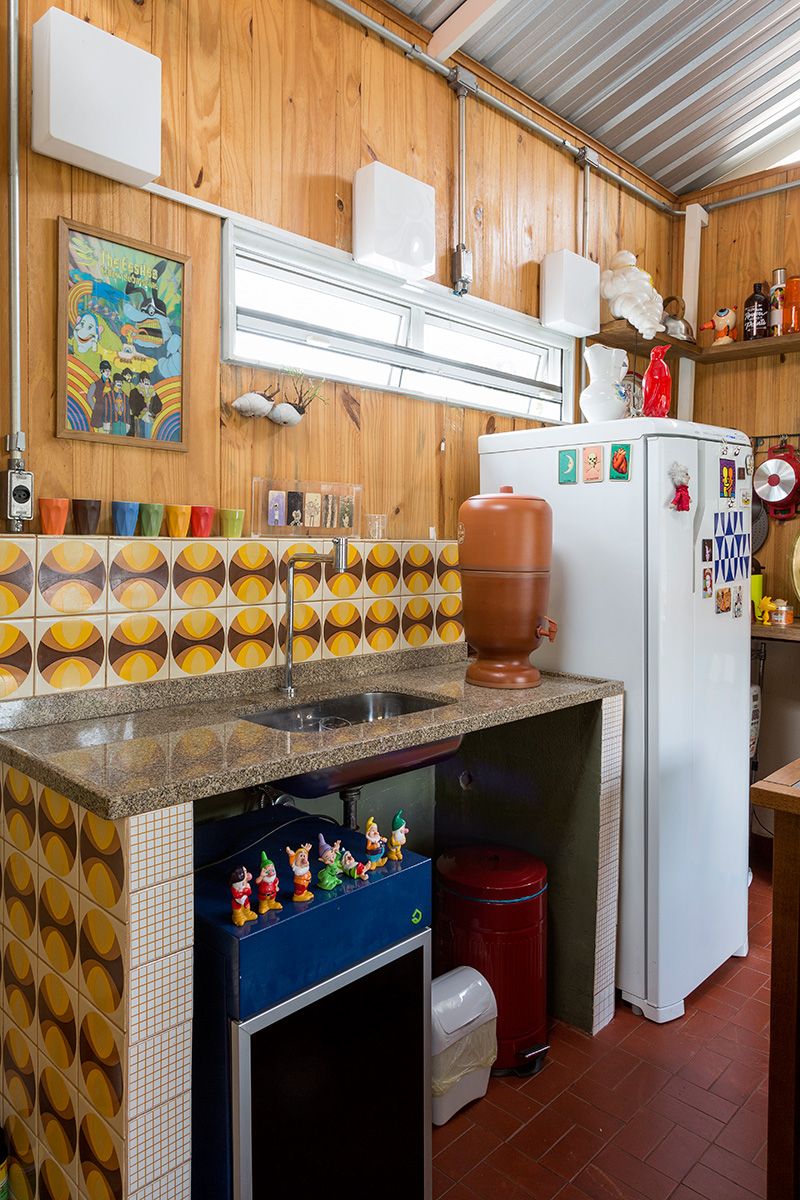 • As prateleiras que ocupam a volta da casa inteira foram feitas pela marcenaria do Luis Fernandes. (11) 97515-6743