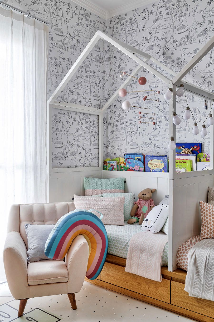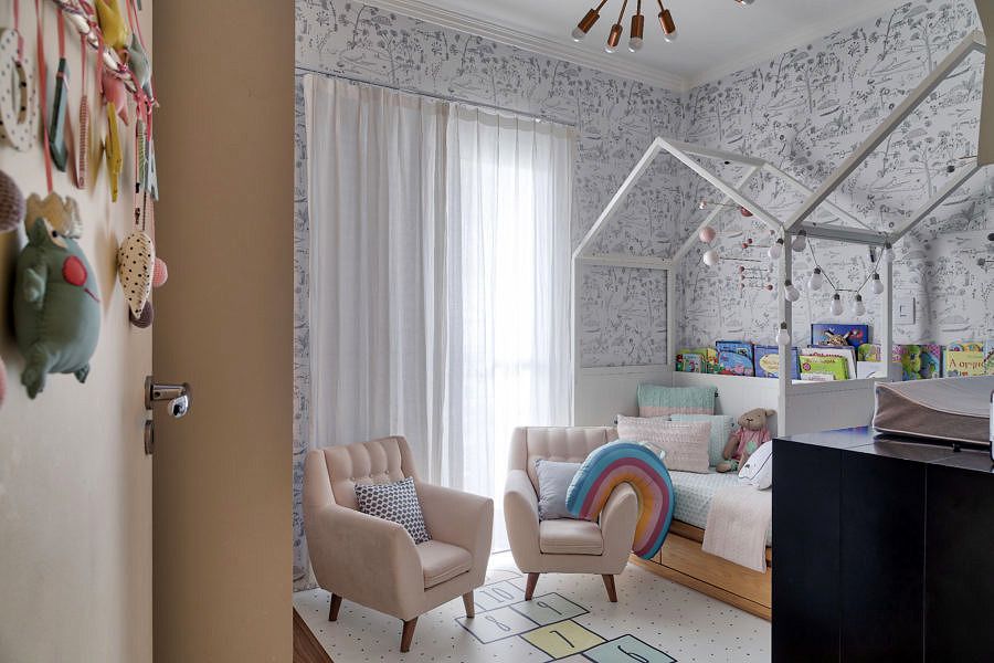 O que achou da casa da Lu até agora? Apenas encantadora, não é verdade? Pois então prepare-se para ficar ainda mais apaixonado(a) pelo lar da arquiteta, porque hoje irei te levar para conhecer a área íntima da casa. Já adianto que a decoração dos quartos, principalmente o das crianças, parece ter saído do Pinterest de tão perfeita. E não poderia ser diferente, né… A Lu e o Diego, que são donos da Ameise, têm muito bom gosto e um olhar singular tratando-se de design infantil.