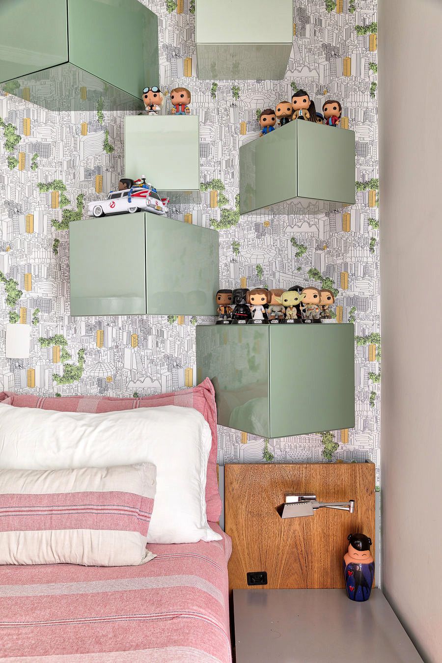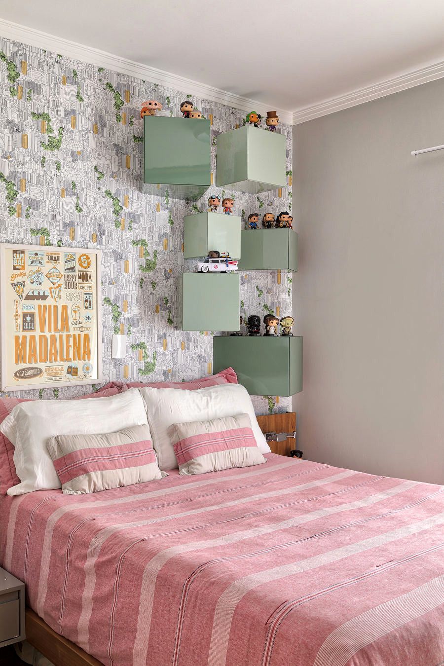 Repara que, além do mobiliário dos pequenos – que une funcionalidade e estilo com perfeição e poderia muito bem estar em qualquer ambiente da casa – as sutilezas do décor trazem um clima supergostoso aos espaços. Sabe quando um lugar faz emergir em nós uma sensação de acolhimento, familiaridade e até nostalgia? Pois é, todos os cantinhos da casa desta família trazem esse sentimento bom, como uma abraço.