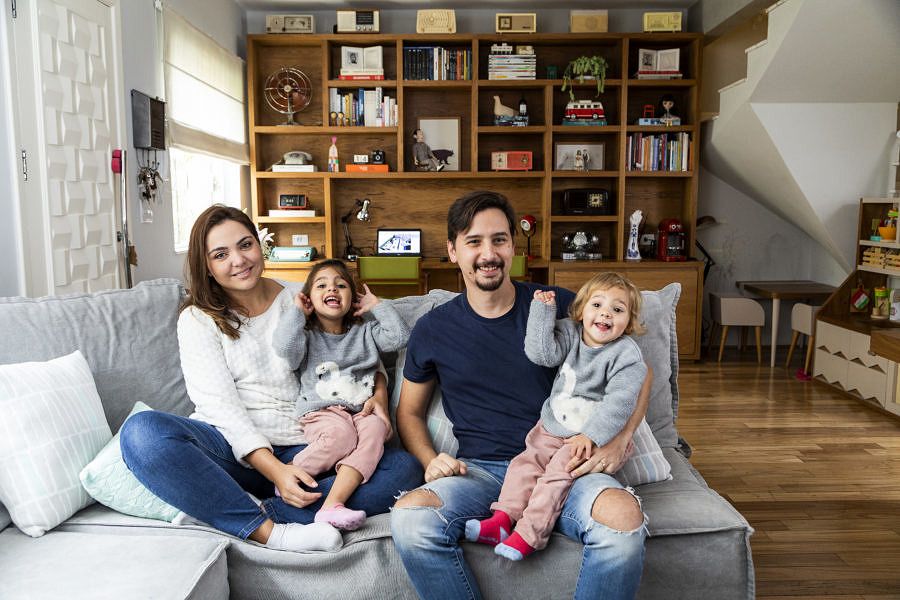 Nosso lar é prático, sem excessos, mas com muitas peças afetivas e elementos que contam nossa história. Ver a minha família à vontade e feliz aqui é muito especial para mim.