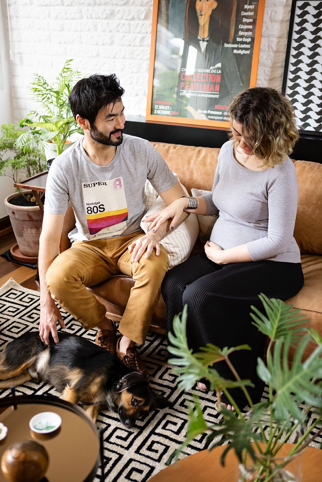 Ambientes amplos, circundado por janelões com vista para a copa das árvores por onde entra a brisa fresca da manhã e a luz natural. A combinação dessas características contribuíram para o clima caseiro e até mesmo interiorano do lar da Malu, do Akira e do baby que acabou de chegar – ahh e do Ataide também, o cachorrinho bon vivant da família! O apartamento de quase 180 m² fica em um prédio antigo no Brooklin e é um daqueles tesouros imobiliários com arquitetura original muito bem conservada, com direito a pisos de ladrilho antiguinho na cozinha e de taco na área íntima.