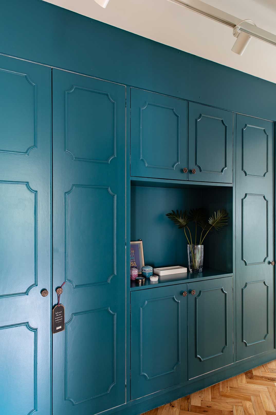 “O apê tem uma energia incrível e aquele charme dos anos 1970 que me encanta. Além dos acabamentos, mantivemos os armários que foram reformados por dentro. Ficou tudo muito cativante”