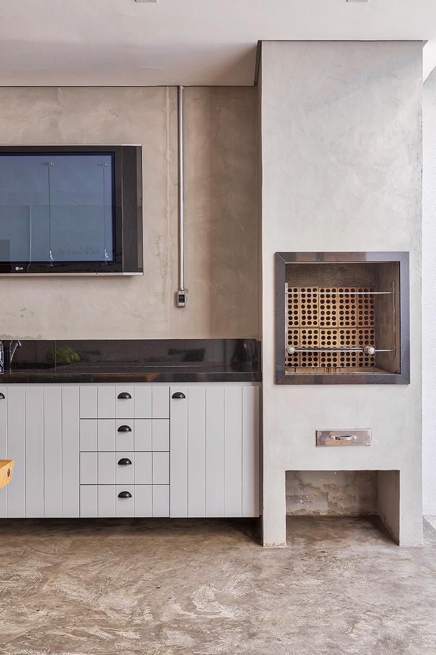 O quebra-quebra não teve nada de light, não! Pelo contrário… a obra por lá se desenrolou de maneira intensa, mas o resultado final compensou todo o esforço. A área gourmet, por exemplo, foi erguida onde antes existiam dois depósitos e hoje é considerada um dos espaços favoritos do casal, que ama receber os amigos. “É ali onde todo mundo se junta e tudo acontece”. Se antes a atmosfera era datada, com a reforma ganhou ares industriais refletidos principalmente nas estruturas expostas. O forro de gesso que rebaixava o pé-direito foi substituído por instalações luminotécnicas aparentes. Repara no desenho lindo que a fiação das luminárias pretas cria no teto branco! Um detalhe decorativo que fez toda diferença, um charme!
