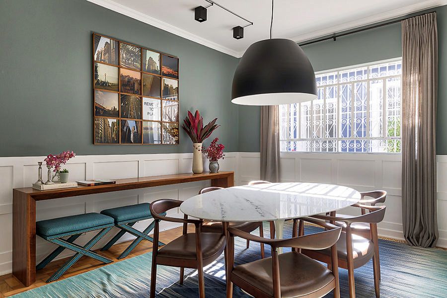 O olhar treinado da arquiteta conseguiu enxergar além dos traços datados do imóvel dos anos 70, situado no bairro Jardim Paulista. Apesar de carecer de uma boa reforma, que acentuasse suas melhores facetas, a estrutura da casa – com suas robustas paredes de tijolos – era muito promissora e oferecia inúmeras possibilidades, além de conferir ao projeto um charme todo especial. “Ela tinha algumas características da época, como janelas de ferro, forro de gesso e piso de taquinho. Nossa ideia era modernizá-la, mas sem tirar sua identidade”, explica.