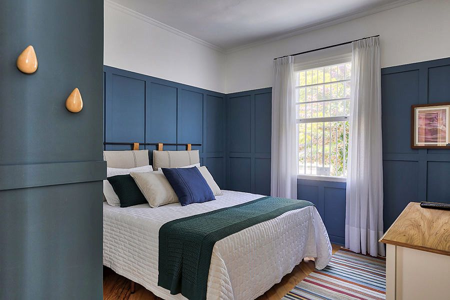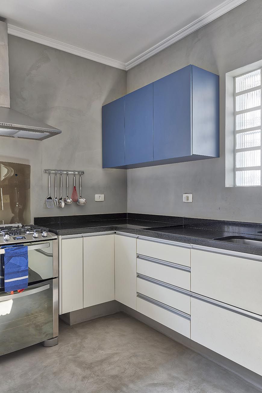 Por fora, a fachada azul cobalto emoldurada pelas árvores do jardim cativa os visitantes e aqueles que estão apenas de passagem. Por dentro, elementos arquitetônicos originais dividem o espaço com acabamentos industriais e com o décor moderno de maneira harmoniosa. Essa mistura boa de linguagens enfatiza o astral despojado e jovial dos moradores da casa, Marcella e Lucas, e fez dela a protagonista perfeita do episódio de hoje da nossa websérie em parceria com a Votorantim.