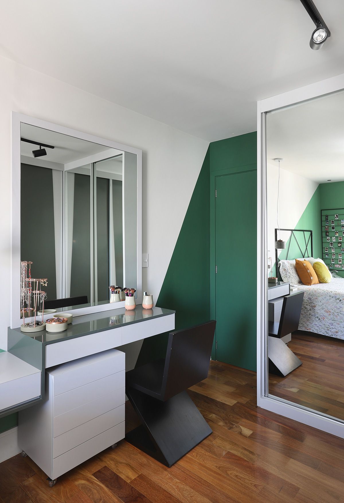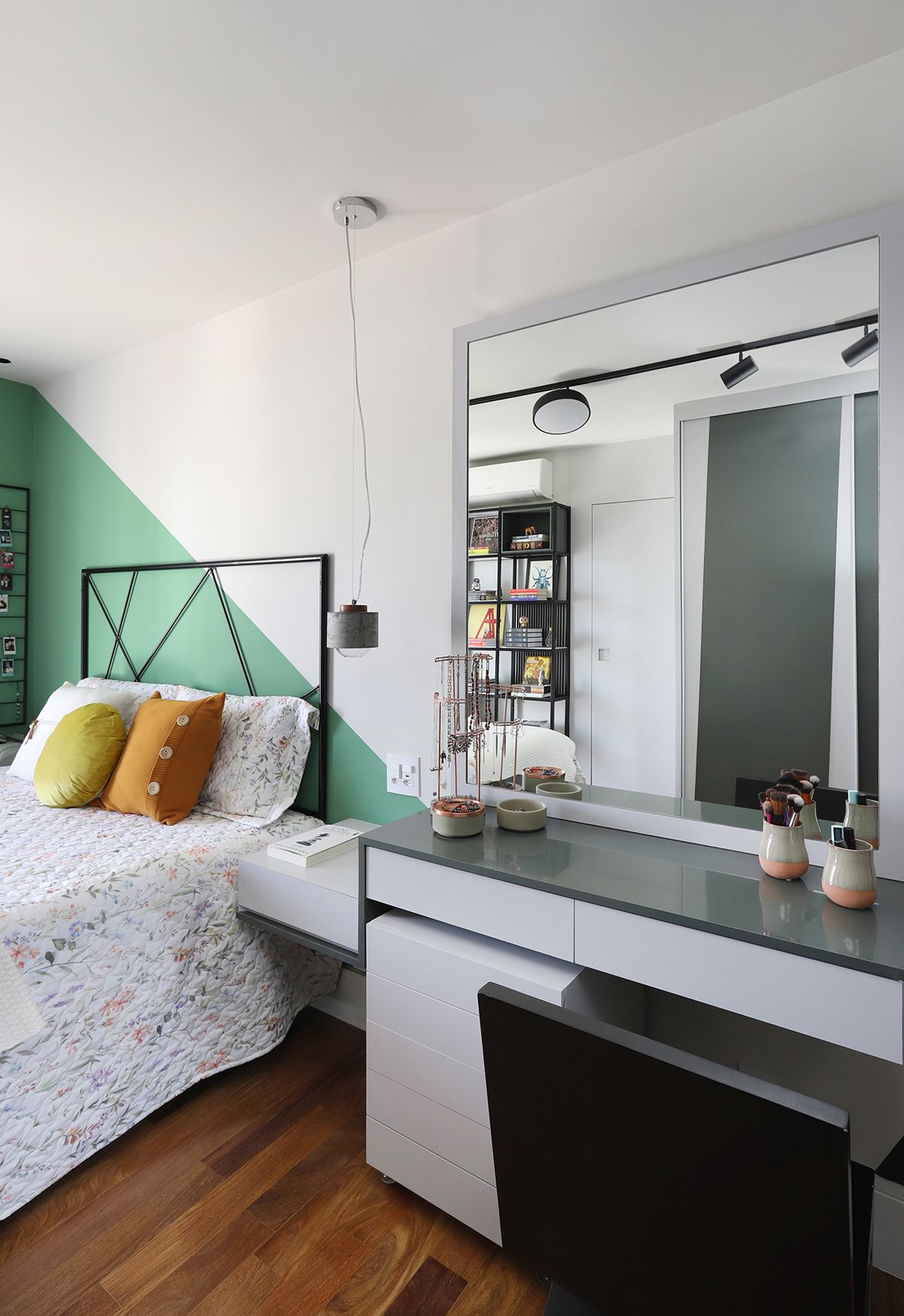 M: Minha estante de livros, com certeza! Sempre tive o sonho de ter uma prateleira, e quando contei para as meninas, elas desenvolveram algo muito melhor que eu poderia imaginar! É clichê dizer, mas amo meu quarto como um todo, ele ficou exatamente do jeito que eu queria, minha cara!