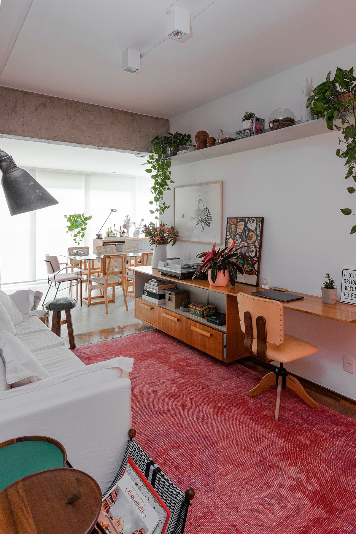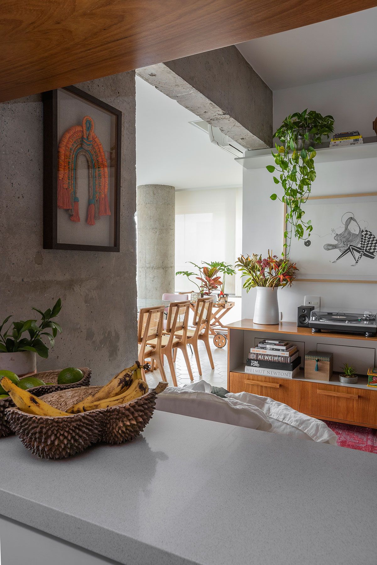 É impressionante como o cimento tem o poder de trazer um espaço imediatamente para os dias atuais. Por mais que seja considerado atemporal, o material tem um lado contemporâneo intrínseco que combina muito com o estilo de vida de quem mora em grandes metrópoles como São Paulo. Outra característica que me chama muita atenção é a sua versatilidade: o concreto pode ser ao mesmo tempo neutro e impactante, dependendo apenas da proposta e dos objetos que compõem os ambientes. Para o Open House de hoje, que tem o apoio da Votorantim Cimentos, fui buscar um apartamento que demonstrasse um pouco dessas qualidades e acabei conhecendo – e me apaixonando – pelo cantinho da Maria Fernanda Dipp. Aposto que você também vai amar, olha só…
