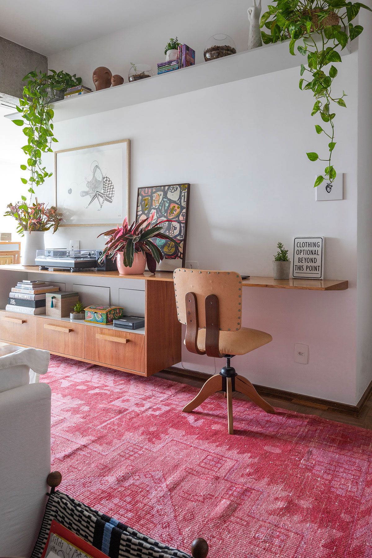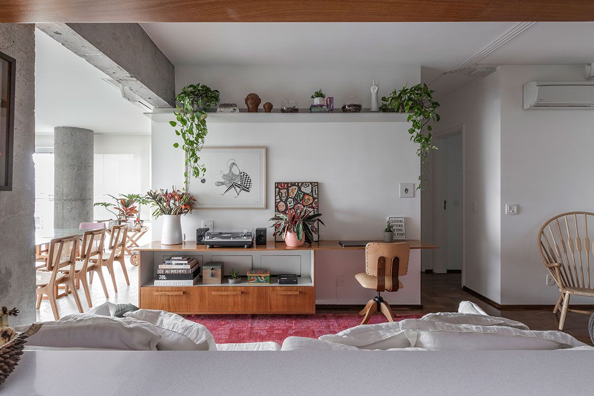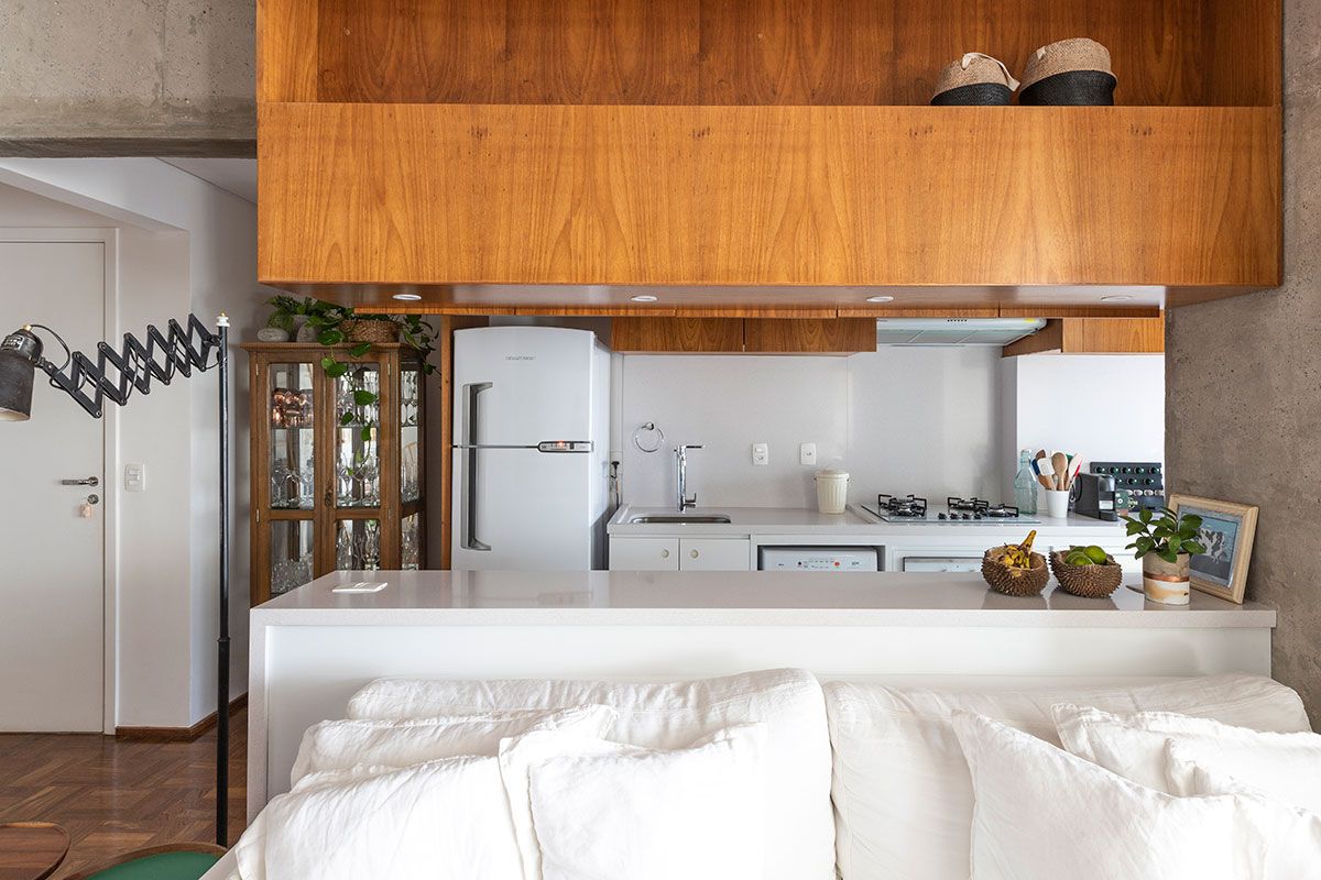 Deixa eu te contar um pouco da história de como a Maria Fernanda encontrou o seu novo lar. Nascida em Curitiba, veio morar em São Paulo em 2014. Ela estava decidida em investir em um imóvel e acabou comprando um ainda na planta, localizado no bairro de Pinheiros. Foram quase três anos de construção. Durante as etapas finais, a Maria aproveitou o tempo que ainda tinha para pensar na reforma. Saiu em busca de um escritório de arquitetura que abraçasse as suas ideias e por meio de um amigo, conheceu a Carol Razuk, sócia do escritório Mestisso Arquitetura e Interiores, que assumiu o projeto.