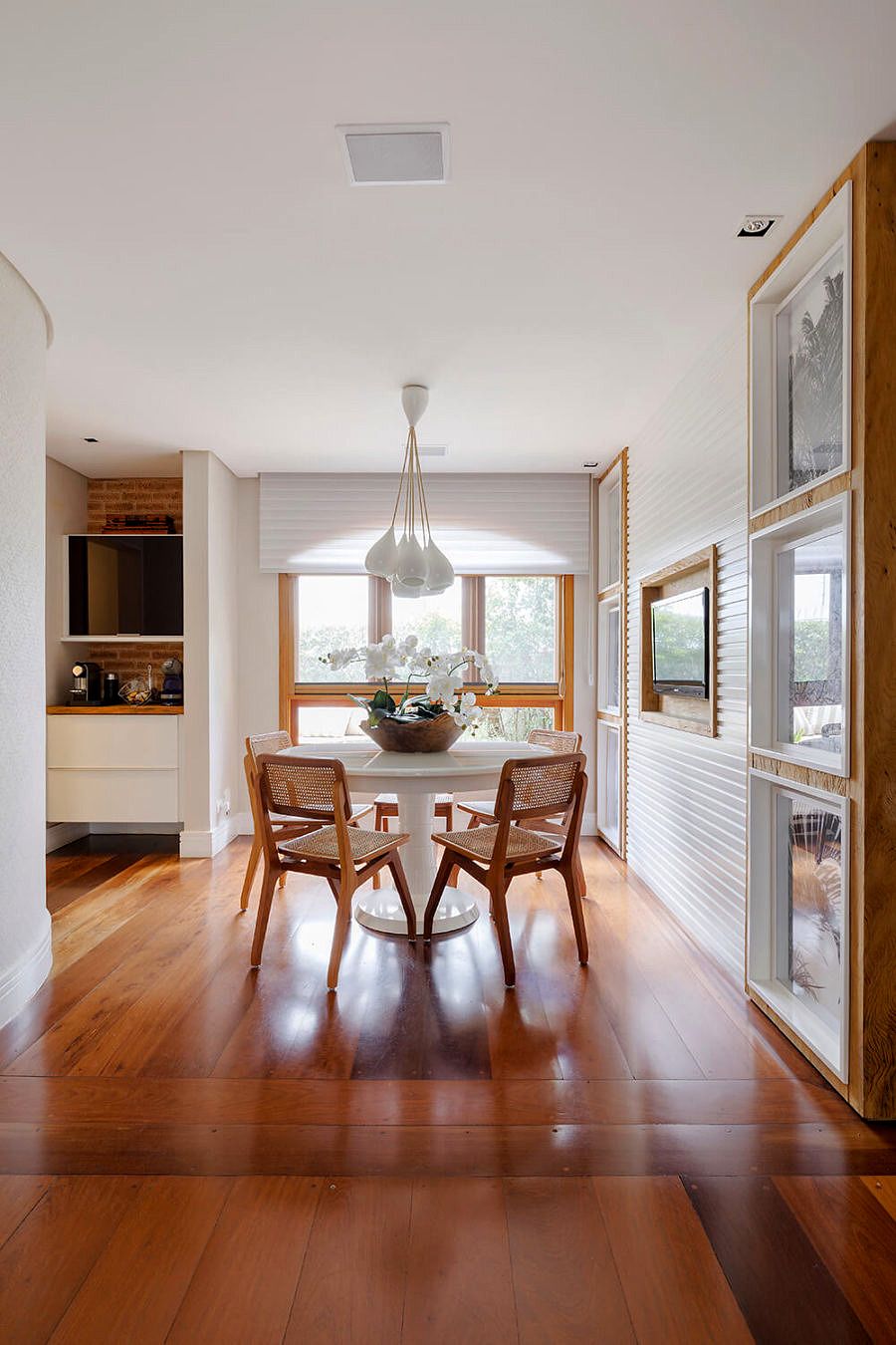 Por outro lado, mudanças decorativas não parecem fazer parte da sua lista de prioridades. O projeto criado em parceria com a arquiteta Daniele Cortez, que é sócia da Natália no escritório MeyerCortez Arquitetura & Design, não sofreu alterações significativas durante o passar dos anos, o que demonstra a sintonia afinada das amigas e a satisfação dos moradores com a atmosfera que foi criada. O que a Nat faz de vez em quando é acrescentar arranjos de flores diferentes para renovar o visual dos cômodos – ótima sacada!