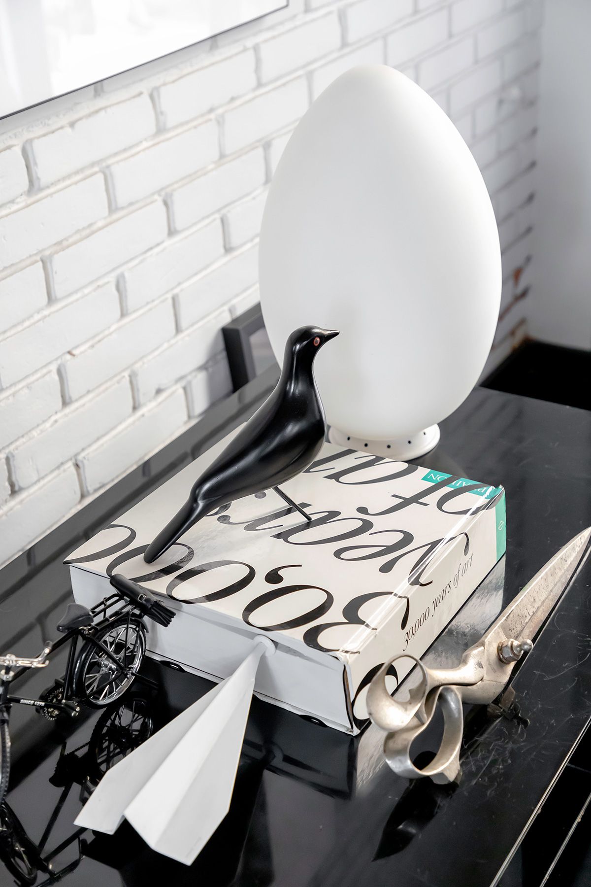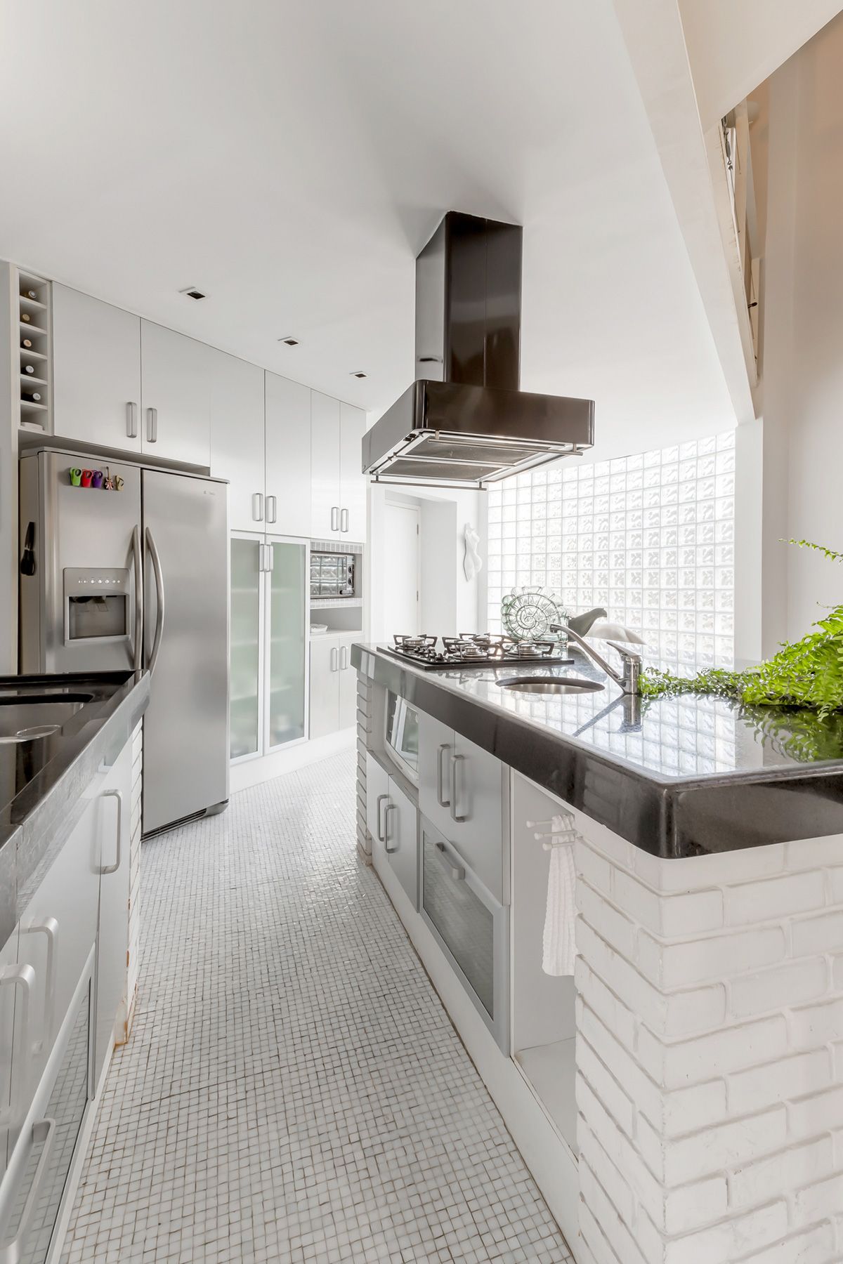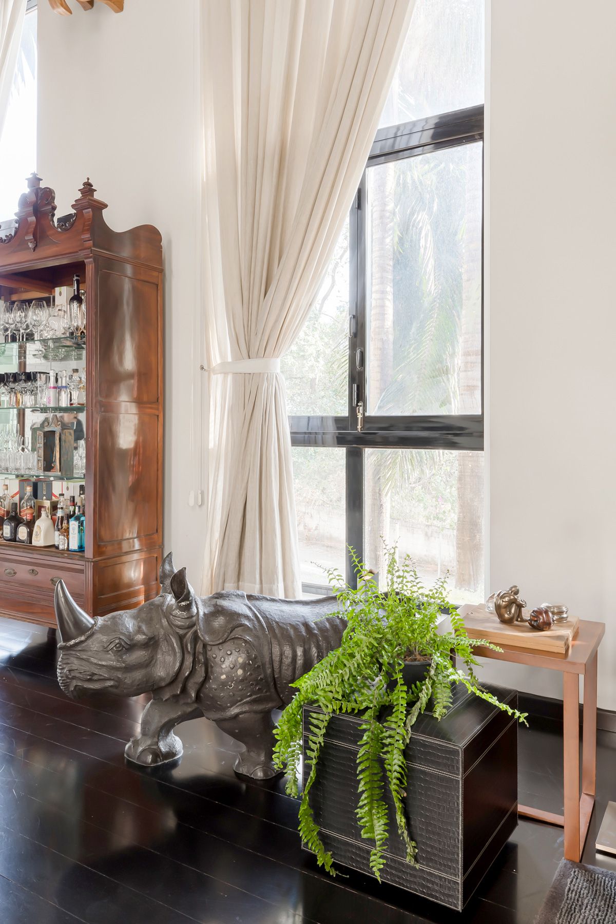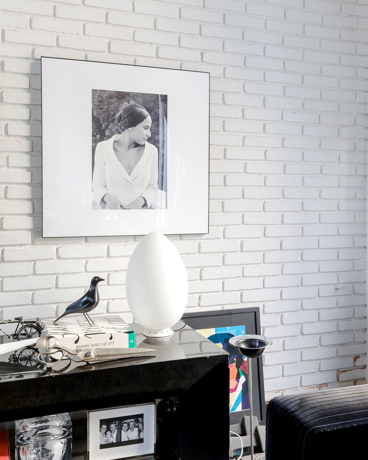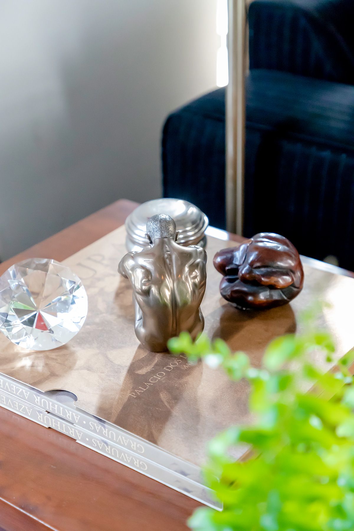 O décor que gira em torno do branco, preto e cinza funciona como base para as obras de arte se destacarem no espaço, a maioria da artista Sonia Ebling, além dos objetos pessoais cheios de história, como a cadeira de balanço que era da bisavó da moradora. Por mais que a arquiteta seja do interior, ela vive em São Paulo há 15 anos e a atmosfera urbana da cidade a encanta demais; receber e aproveitar o apartamento nos fins de semana está entre seus favoritismos: