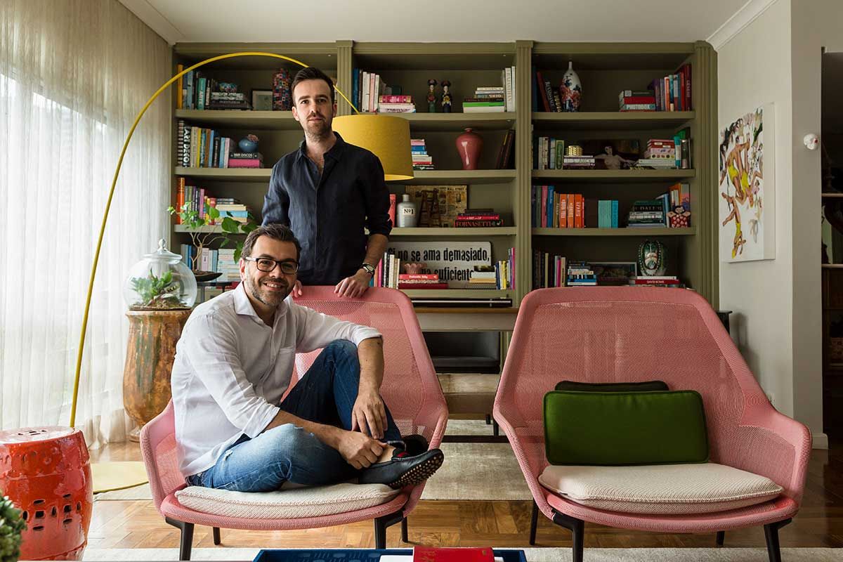 No dia das fotos registramos o Newton e o Marcio, afinal, os 2 que curtem juntos esse apê que flana entre o clássico e o contemporâneo de maneire leve e descontraída.