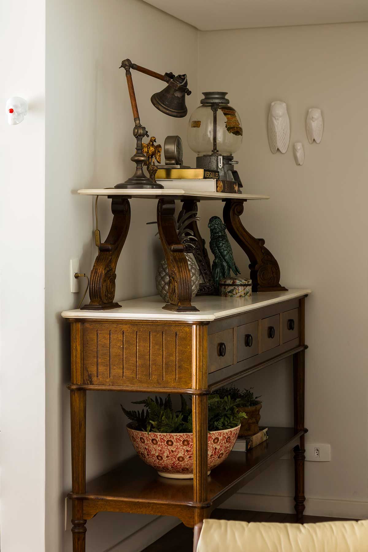 Lindo,lindo,lindo.qto bom gosto!!!!!! gostaria de saber o que é aquela peça de vidro redonda em cima do movel antigo.