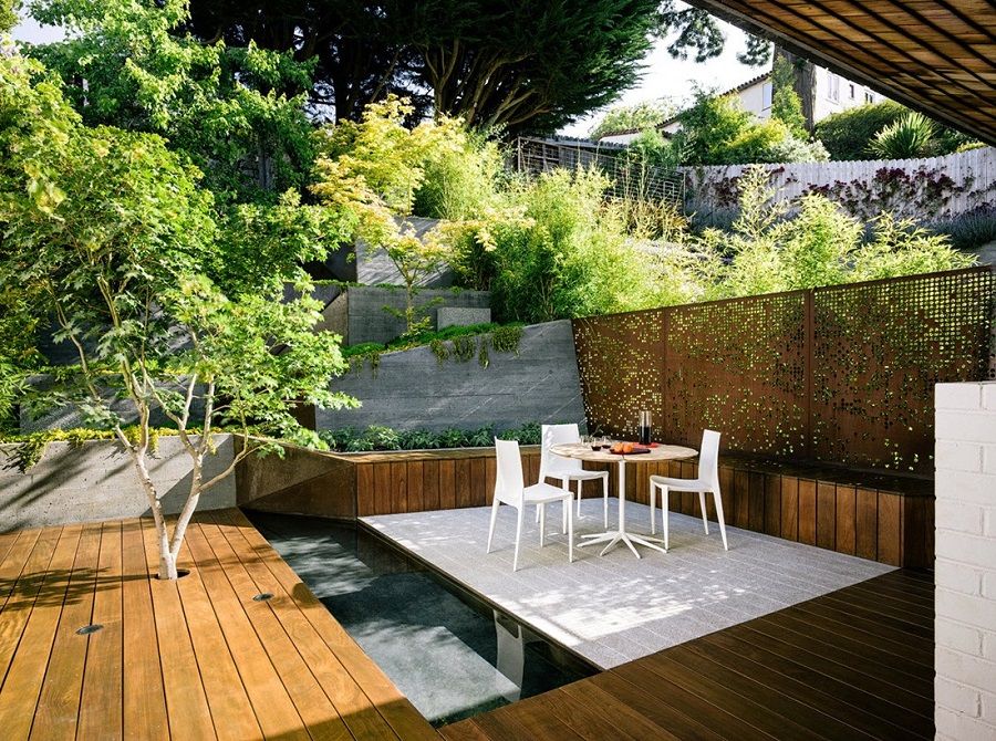 O deck no patamar mais alto permite reclusão e tranquilidade. Foto: Joe Fletcher Photography