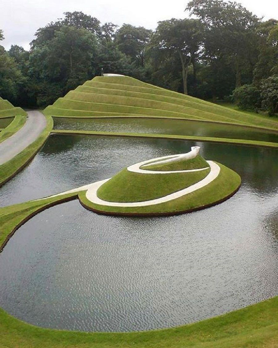 Charles Jencks foi um renomado teórico cultural, historiador da arquitetura e paisagista. Nascido nos Estados Unidos, mais tarde estabeleceu-se no Reino Unido e se tornou um influente arquiteto paisagista na Grã-Bretanha. Inspirava-se na genética, nos buracos negros, na teoria do caos e em ondas.