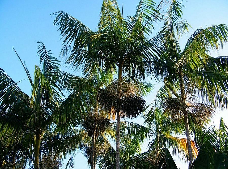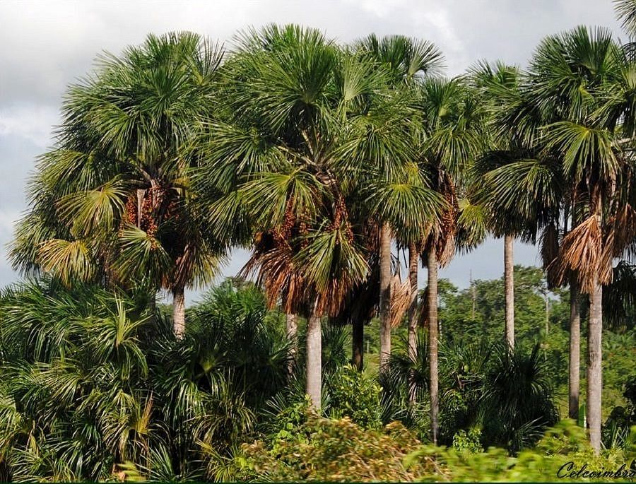 Característica geral da espécie: A palmeira cresce isoladamente ou em comunidades e exige abundante suprimento de água no solo. Espécie de porte elegante e pode atingir até 35 m de altura.