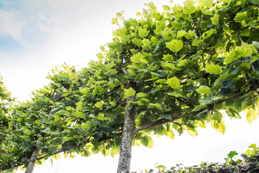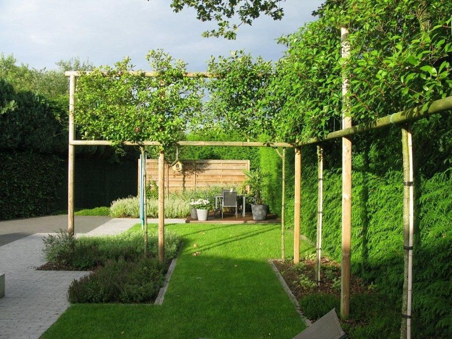A árvore mais antiga e mais conhecida na Europa para este tipo de condução é a Tilia sp (várias espécies dela são boas para ser conduzidas em espaldeira) da família das Malváceas.