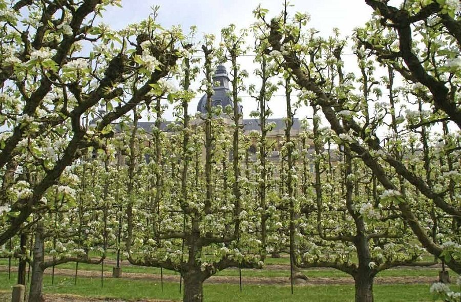 Um tipo de condução de árvores muito antiga, presente nos jardins formais nos castelos europeus assim como nas propriedades rurais. Nos jardins dos castelos as árvores obedeciam ao desenho retilíneo e eram podadas na altura e largura desejada. Muito comum a beira de caminhos nos arredores do castelo. Além disto no pomar estavam as frutas conduzidas em espaldeira como na “Potager du Roi” (A horta do Rei) do Palácio de Versalhes.