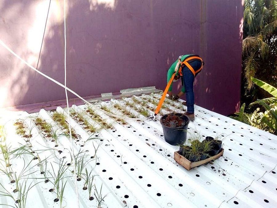 O Instituto Cidade Jardim tinha acabado de lançar um produto inovador, o primeiro desse tipo no mundo: a Kaatop, uma telha térmica tipo sanduíche, hidropônica (portanto dispensa a necessidade de substrato) para fazer telhados e paredes verdes sem precisar de laje ou manta de impermeabilização – diferentemente de todos os sistemas hoje usados mundo afora, que requerem instalação sobre uma cobertura previamente impermeabilizada. A Kaatop simula o funcionamento dos tecidos vegetais em uma folha.